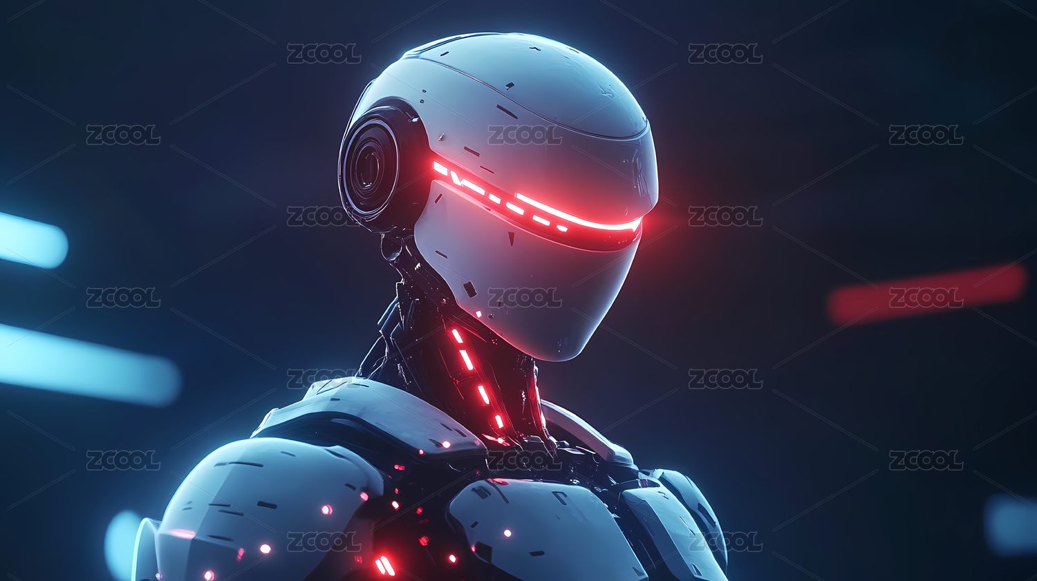 未来科技感机器人头部特写
