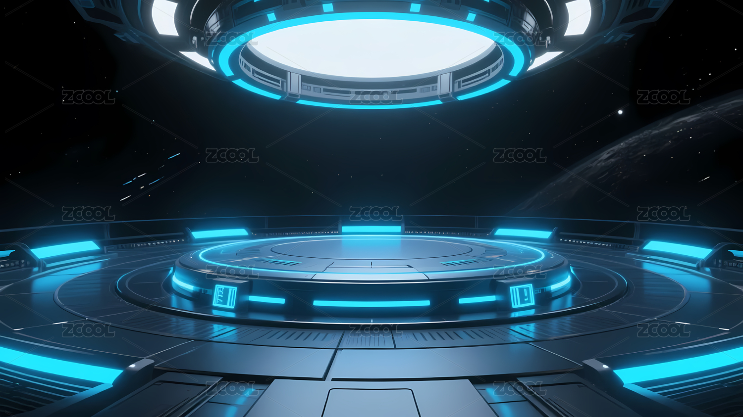 圆形,科技,未来,平台,星星,神秘,宇宙,光芒,冷色,高科技