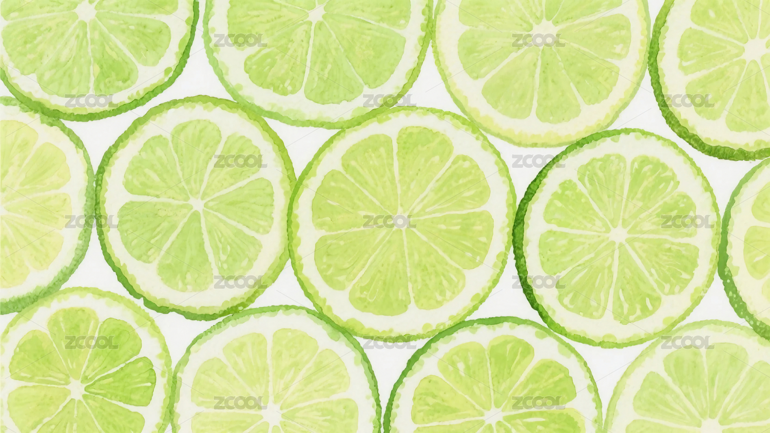 水彩画,青柠,切片,绿色,清新,自然,水果,艺术,手绘,细腻