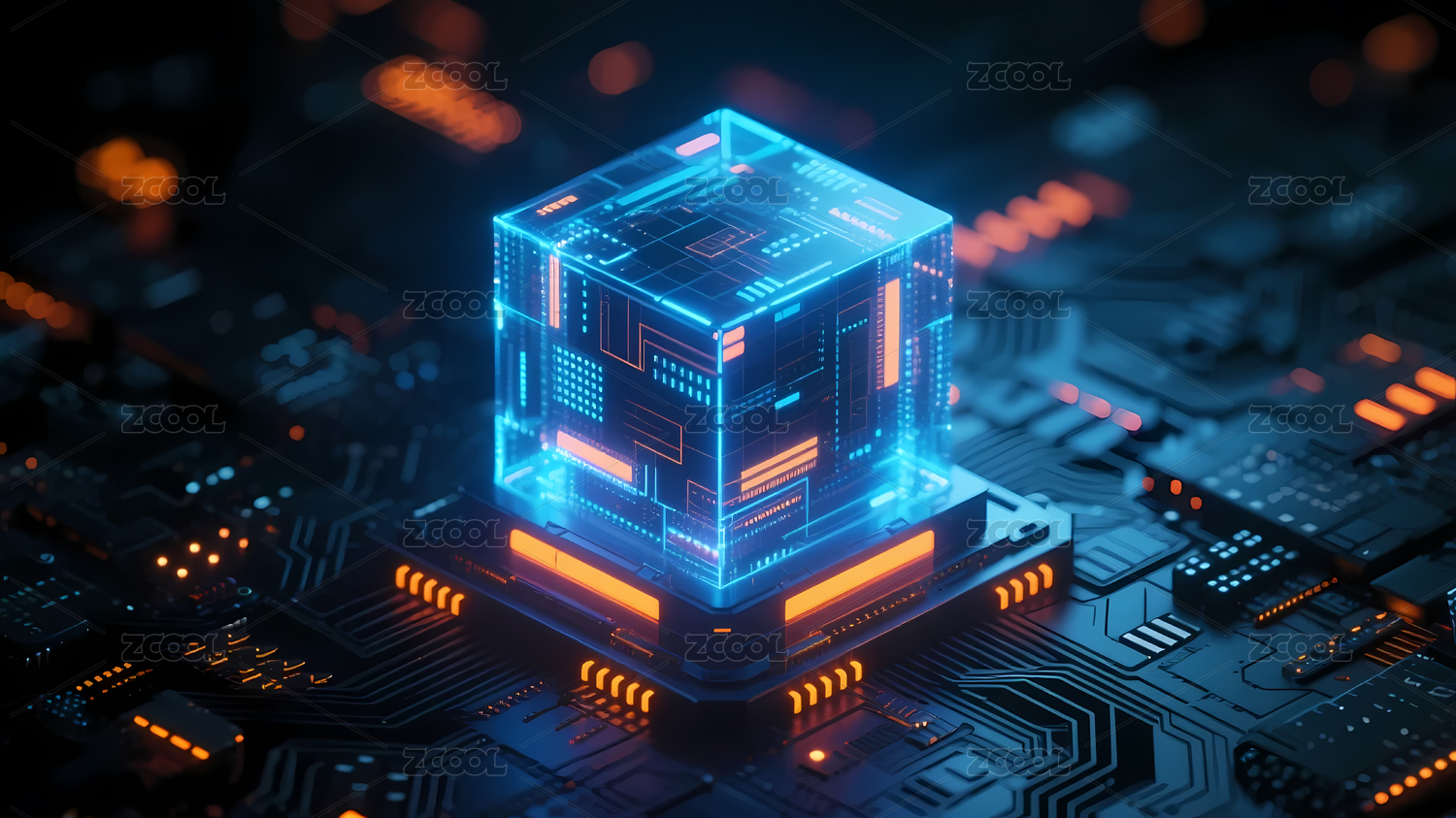 蓝色,电子,科技,立方体,背景,深色,电路,中心,光线,复杂