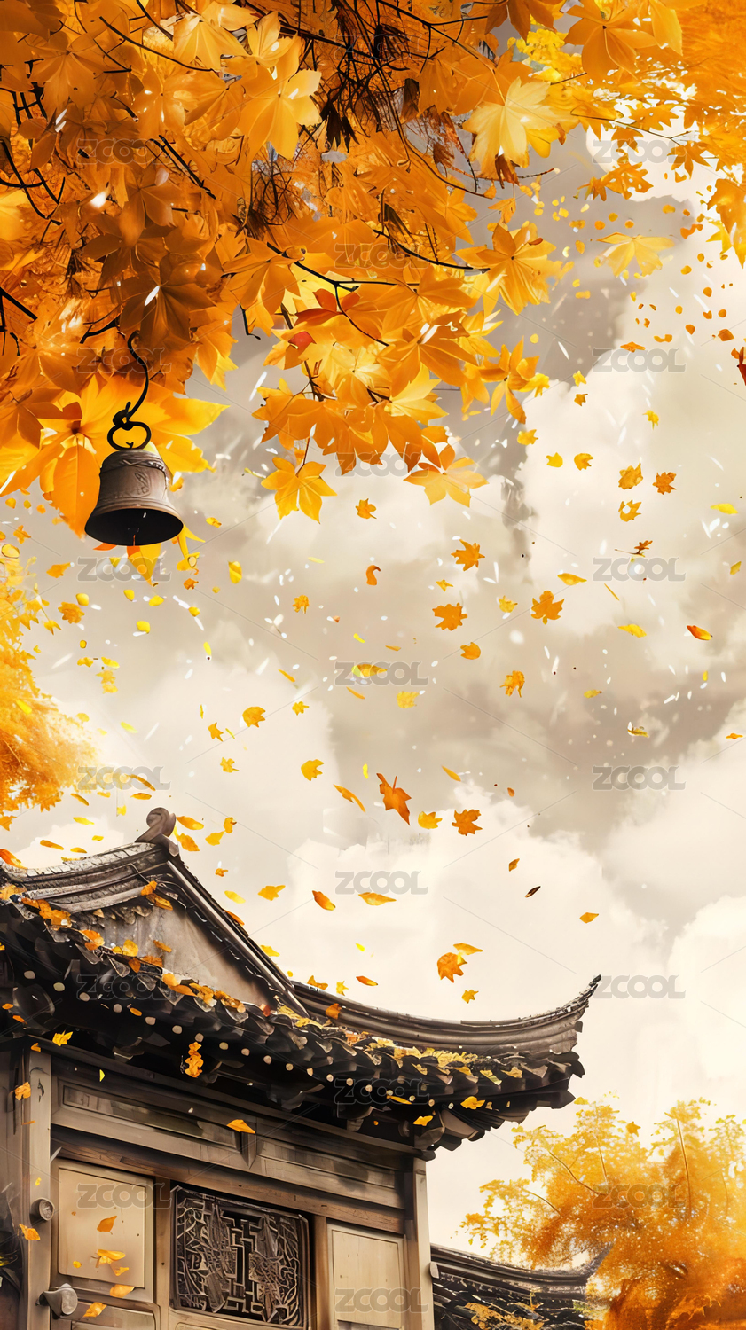 秋日庭院黄叶纷飞