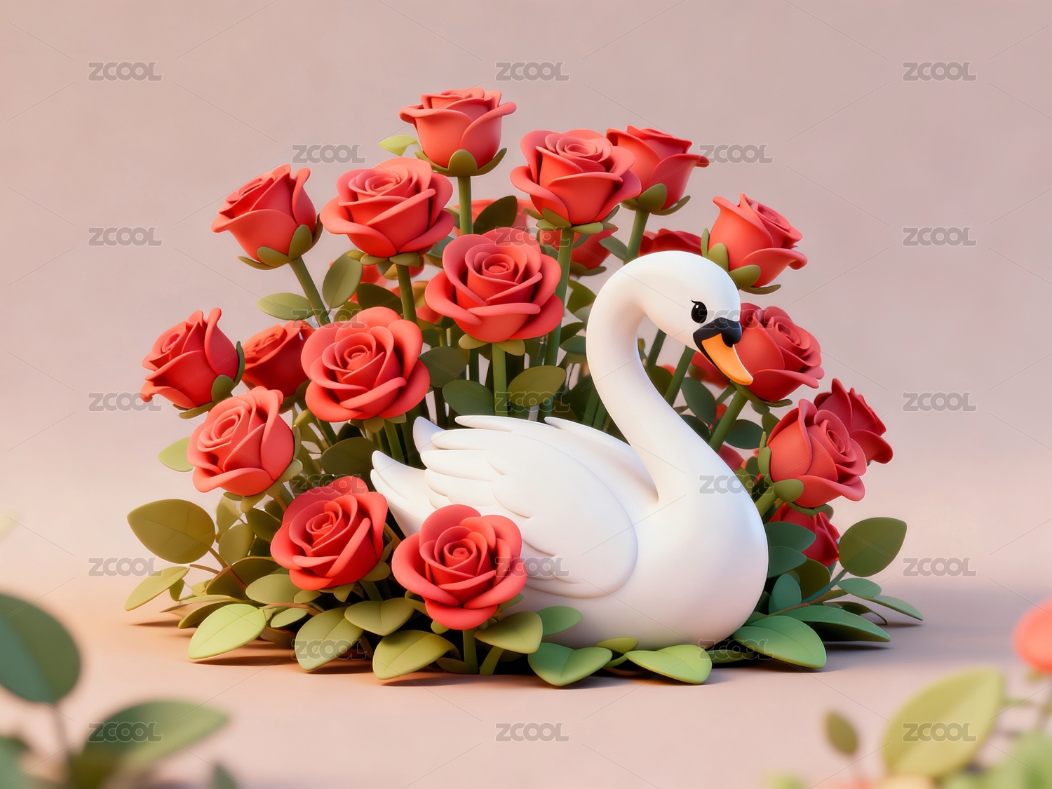 玫瑰花与白天鹅组合