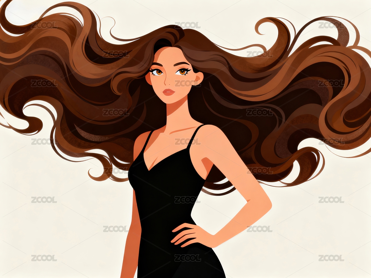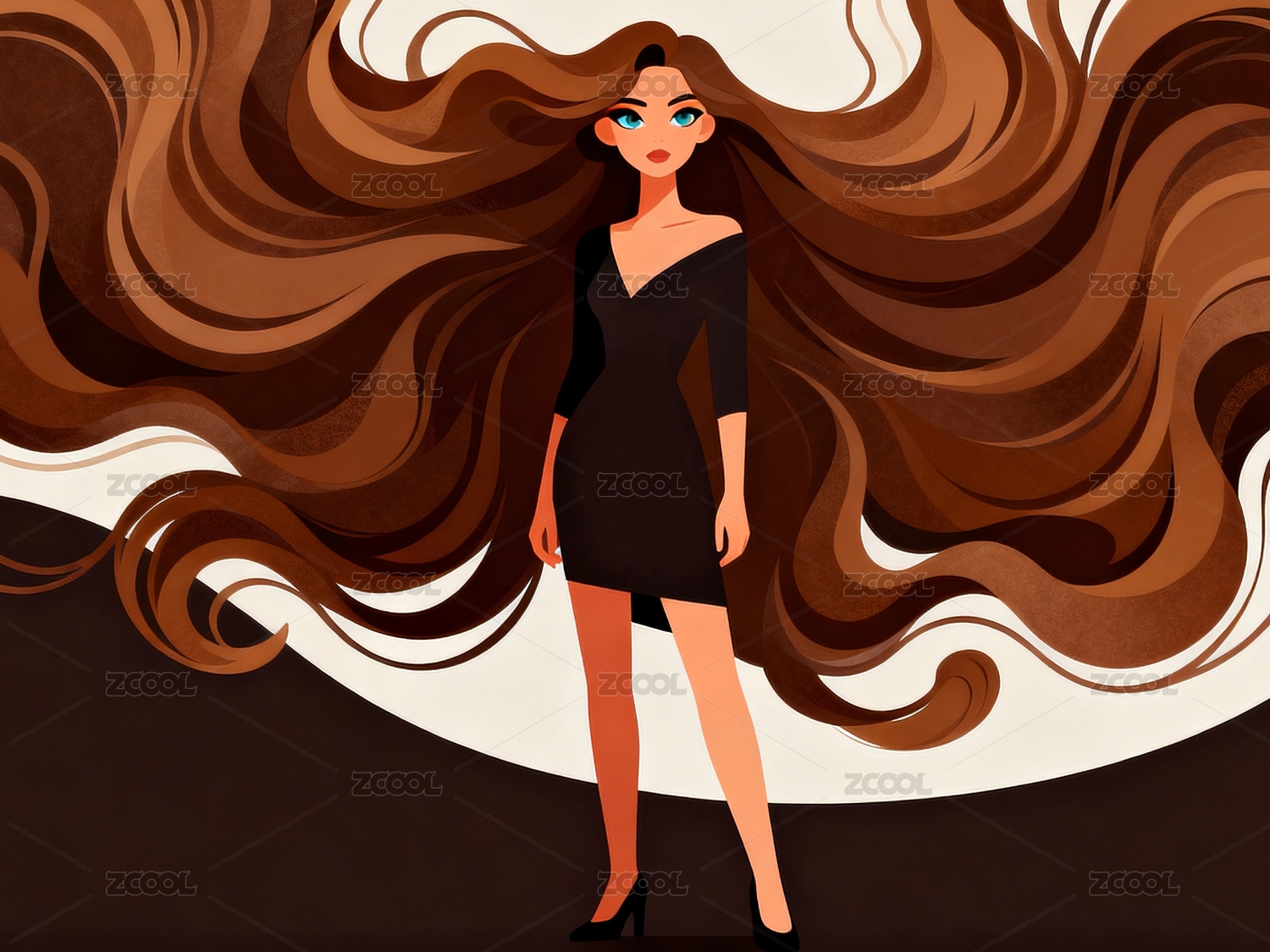 女子,头发,优雅,风格,轮廓,棕色,眼睛,嘴唇,形象,卡通