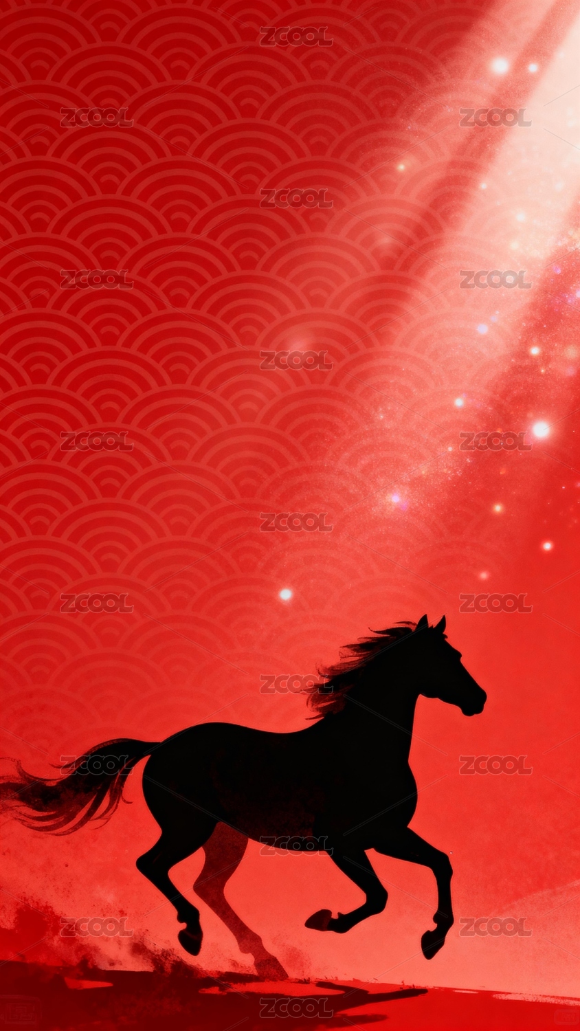 动物,马,马年,传统,红色,国风,新年,中国文化,春节,粒子