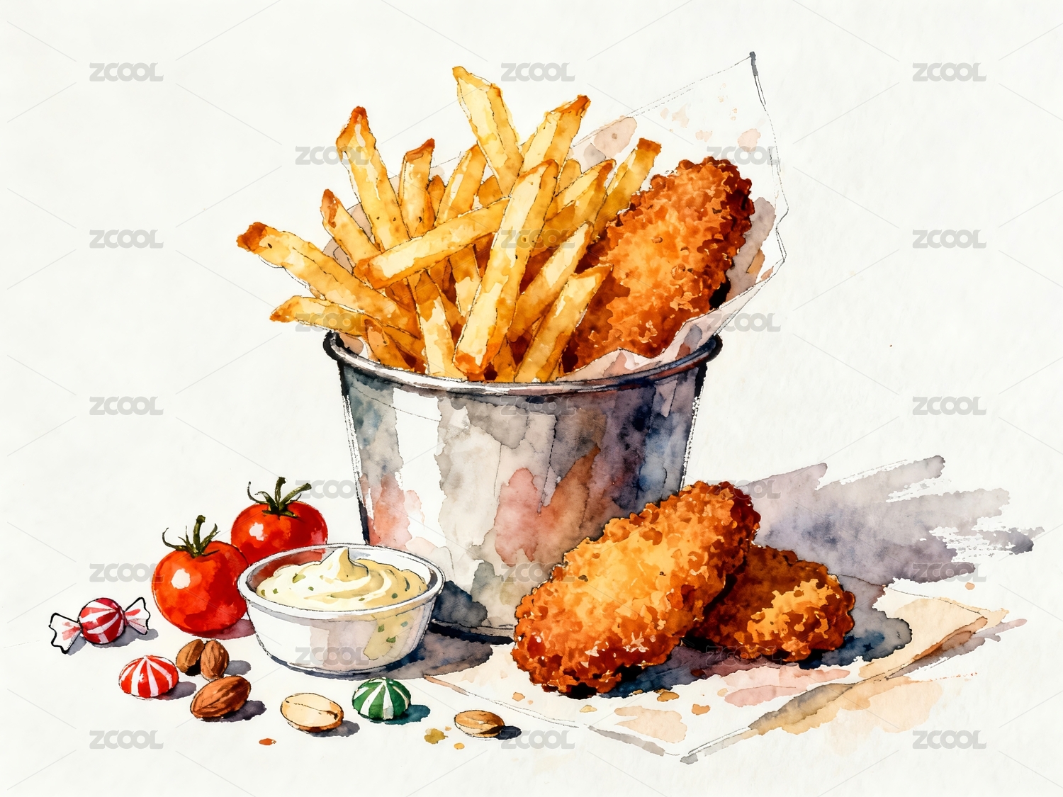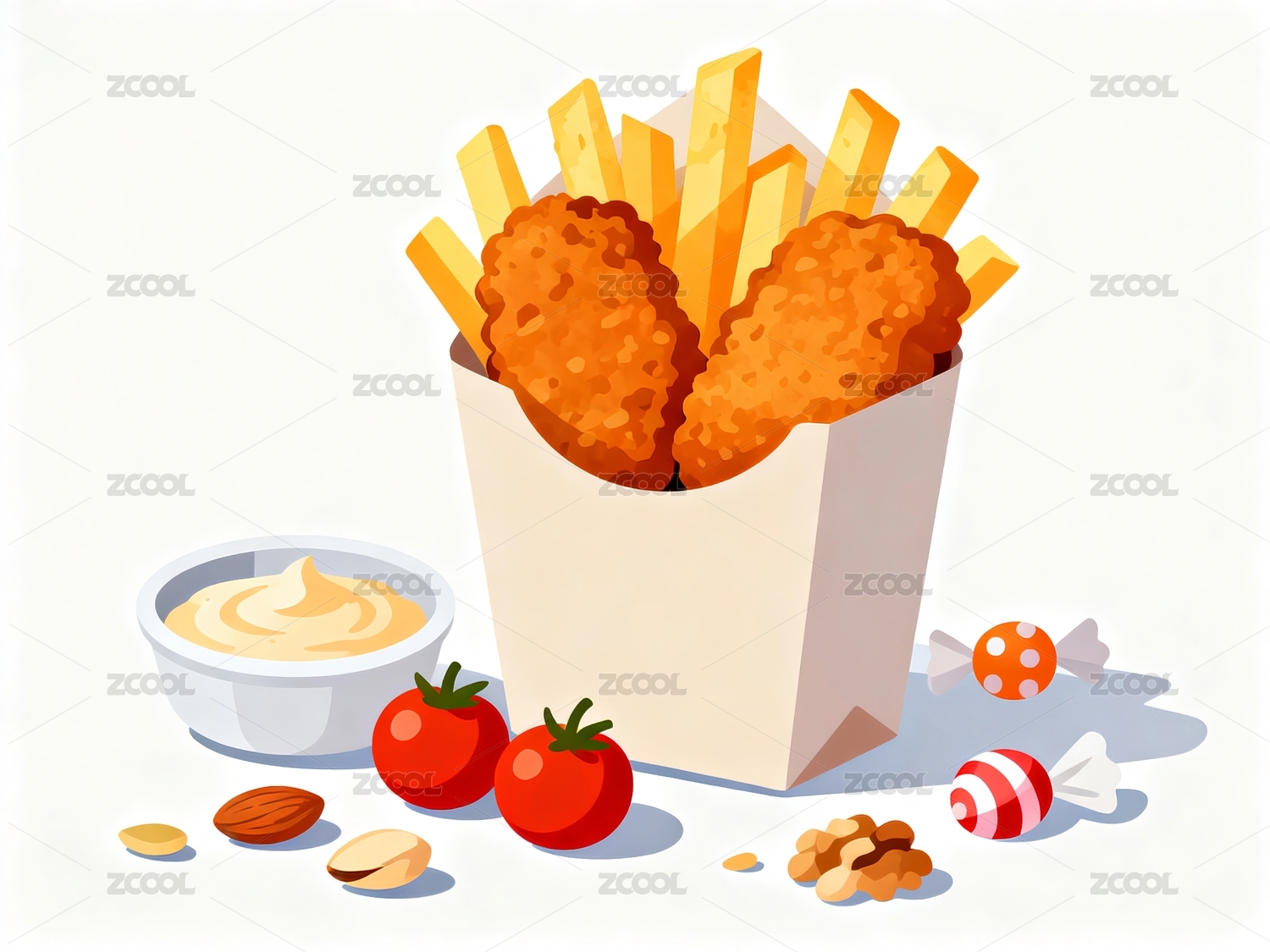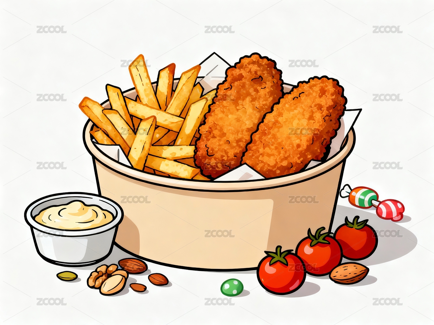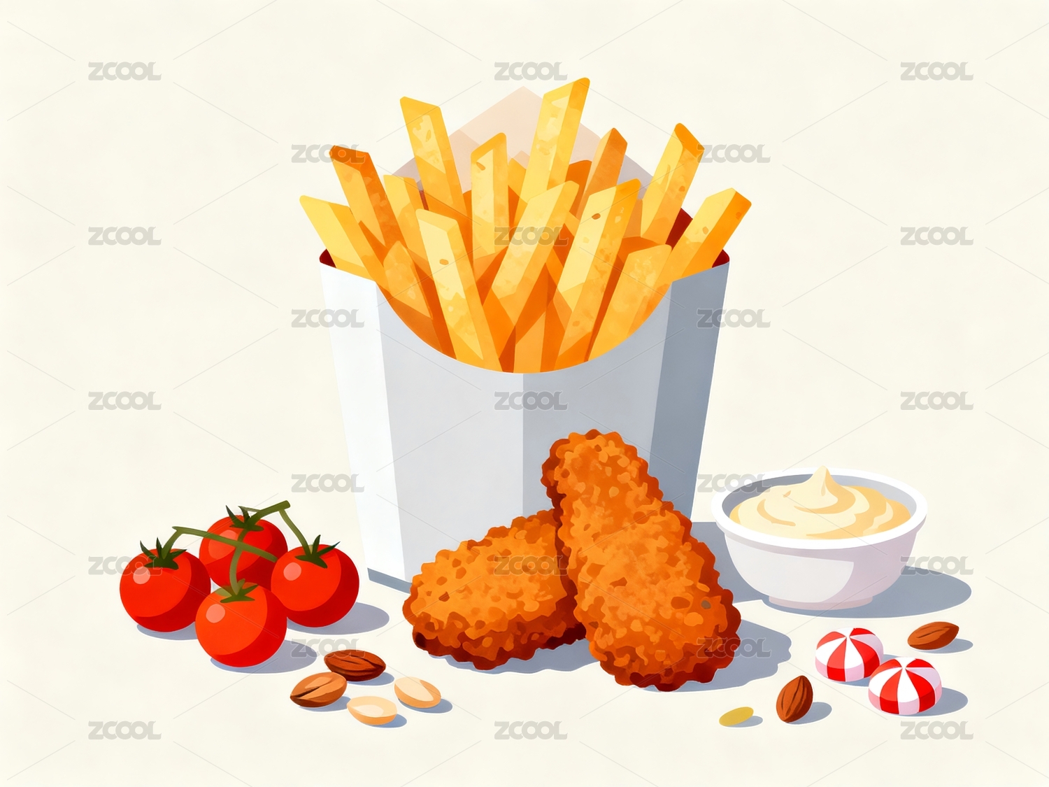 食物,白色,摆盘,简单,美食,薯条,番茄,配菜,餐点,蔬菜