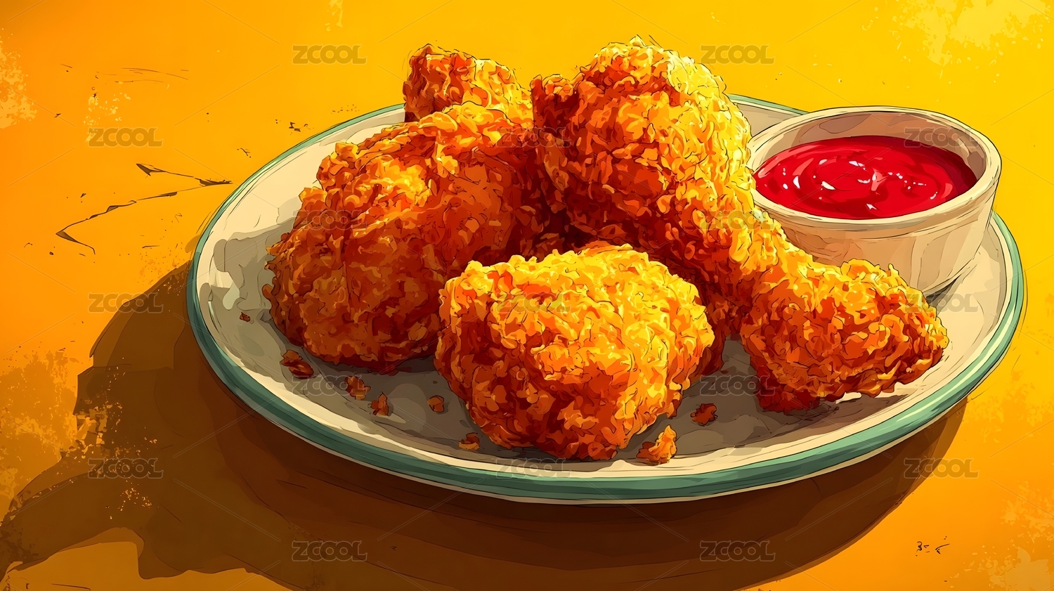 摆拍,摆件,食物,白色,奶油,炸鸡,薯条,番茄,配菜,餐点