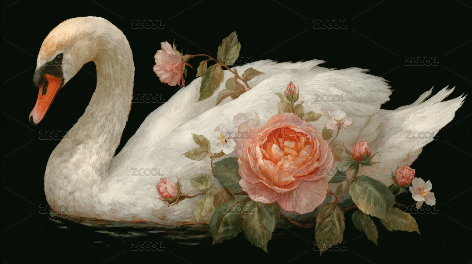 玫瑰天鹅水面植物元素