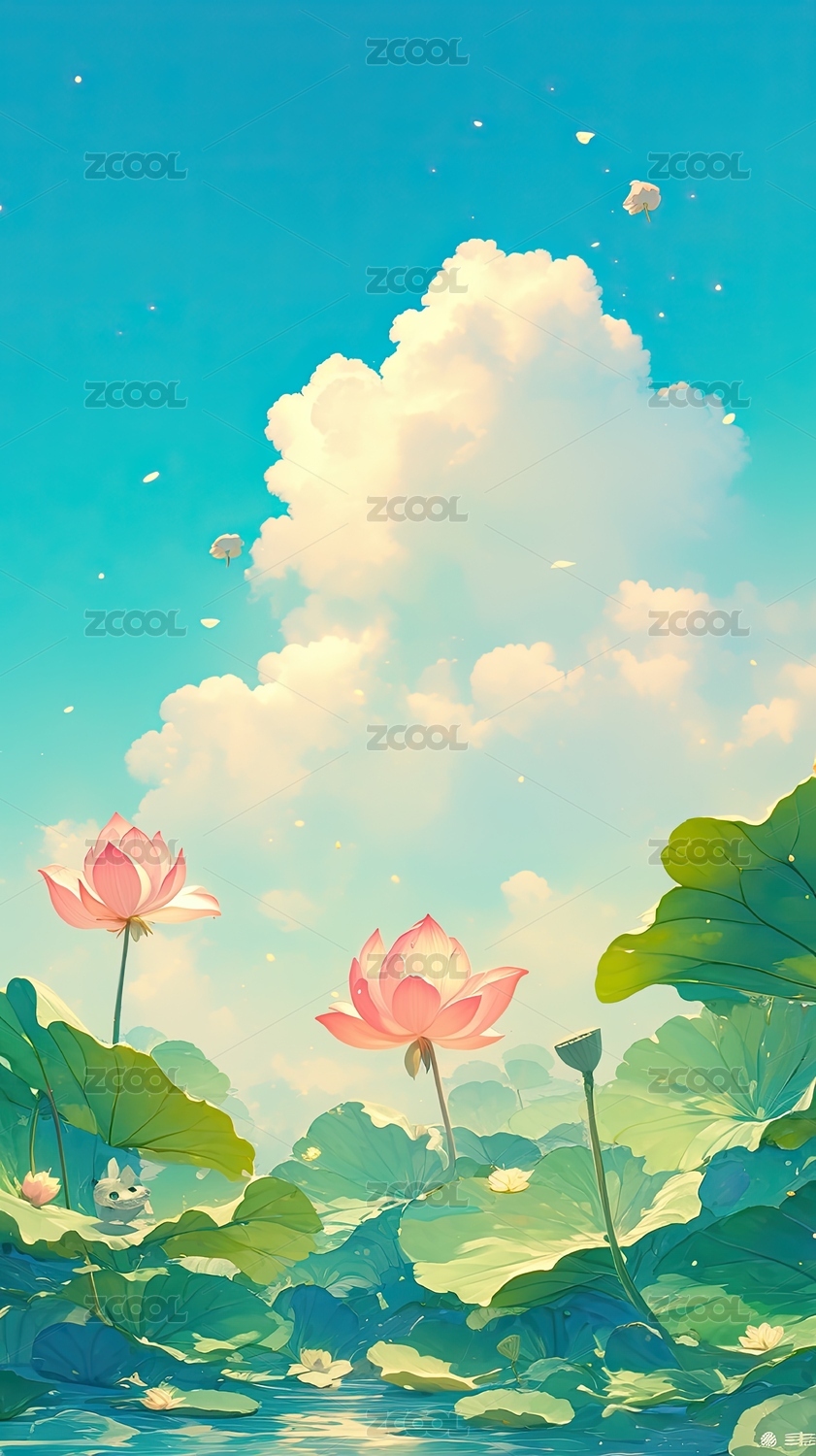 风景二十四节气荷花云朵壁纸屏保