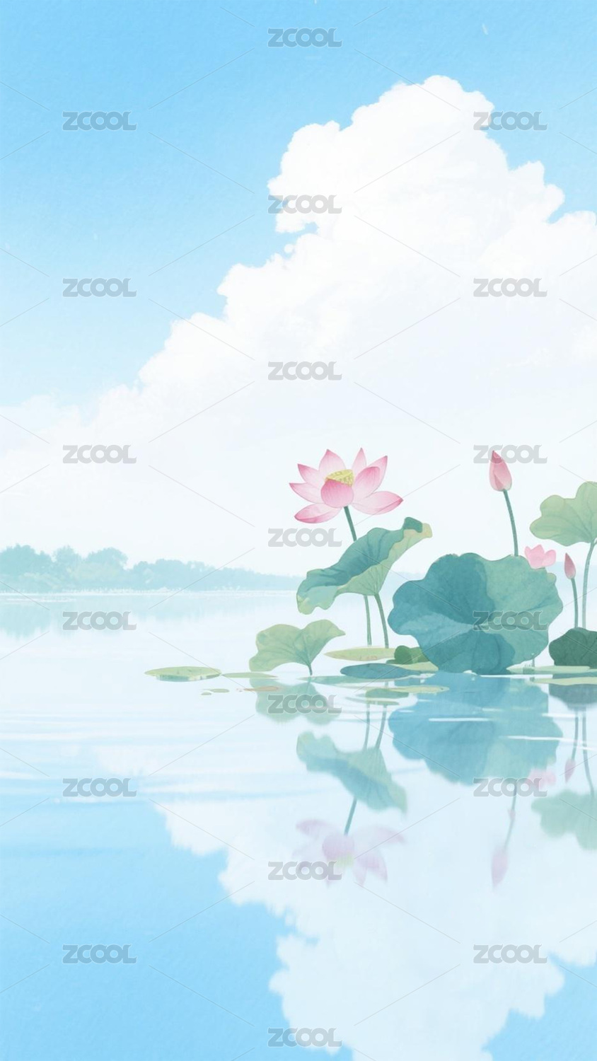 荷塘水面倒影插画