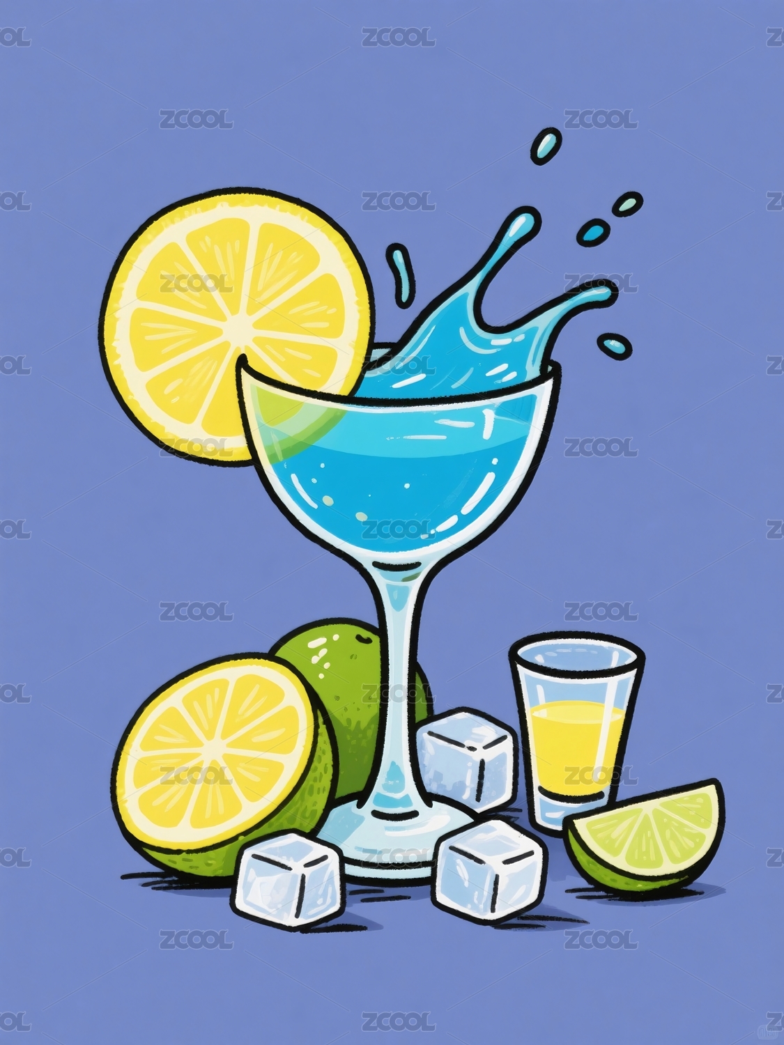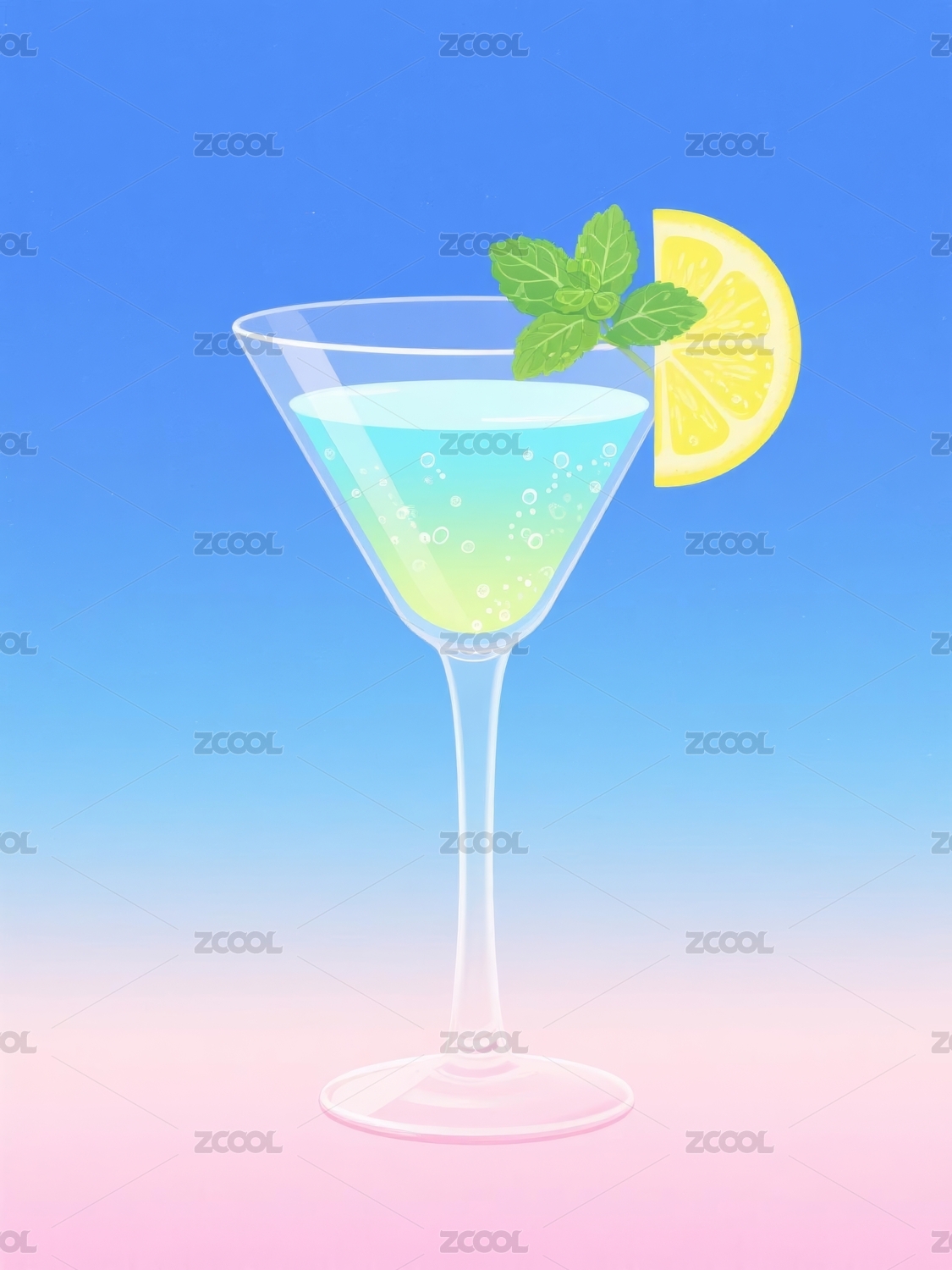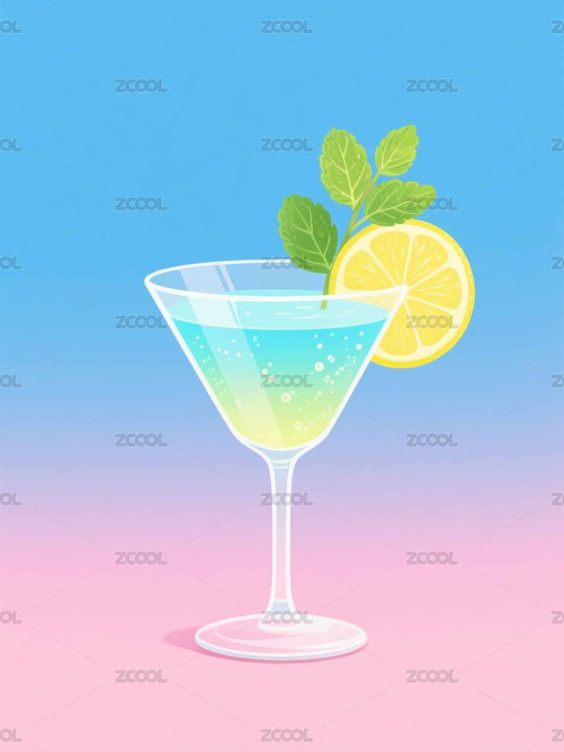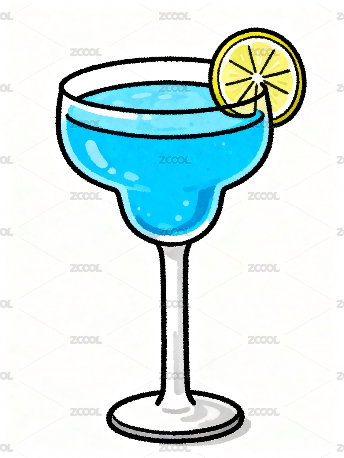 轮廓,光线,鸡尾酒,玻璃杯,液体,蓝色,柠檬片,饮品,透明,边缘