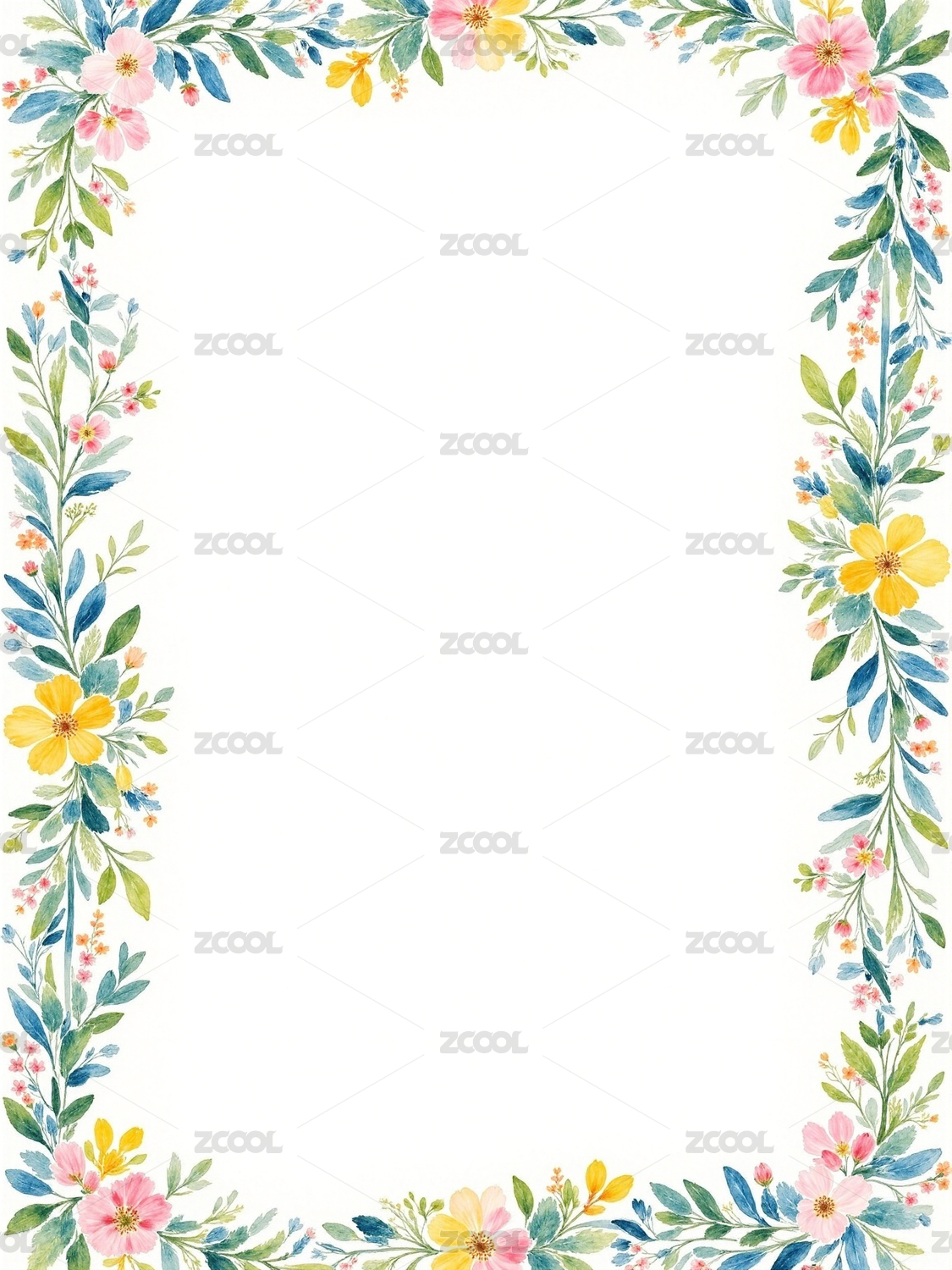 水彩植物边框