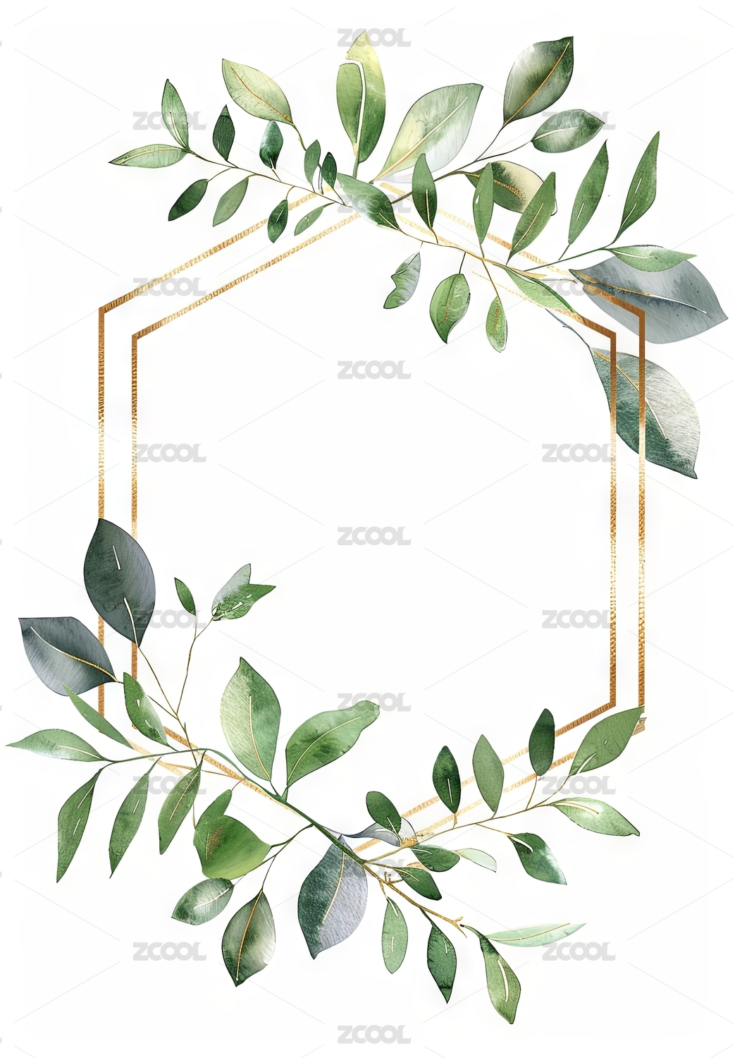 水彩绿叶金边枝条装饰边框