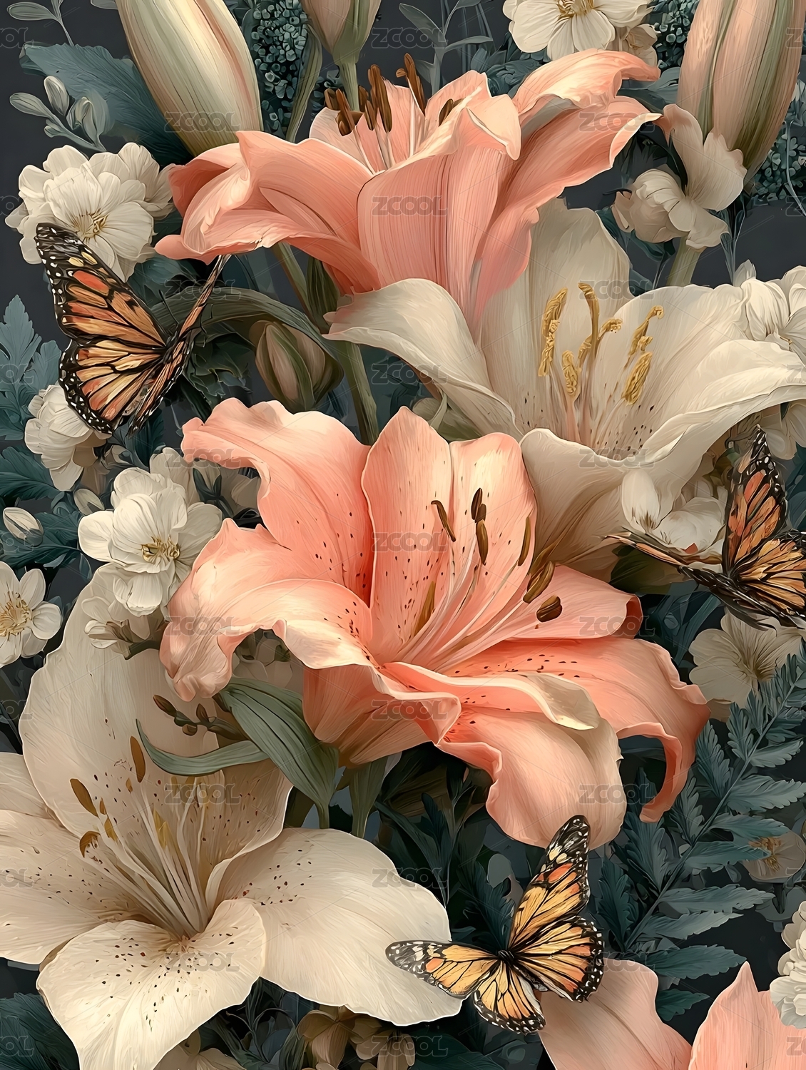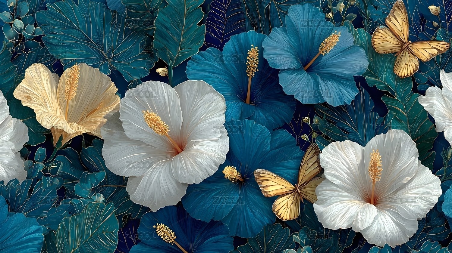 花朵,植物,叶子,花瓣,花蕊,枝条,背景,图案,装饰,插画