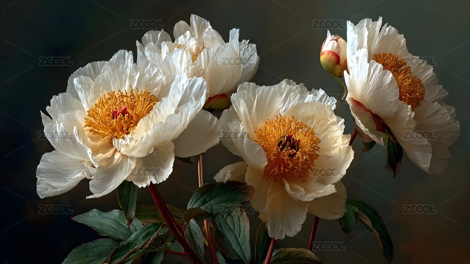 白色,花瓣,花蕊,花苞,植物,花,牡丹,花朵,黄色,绿叶