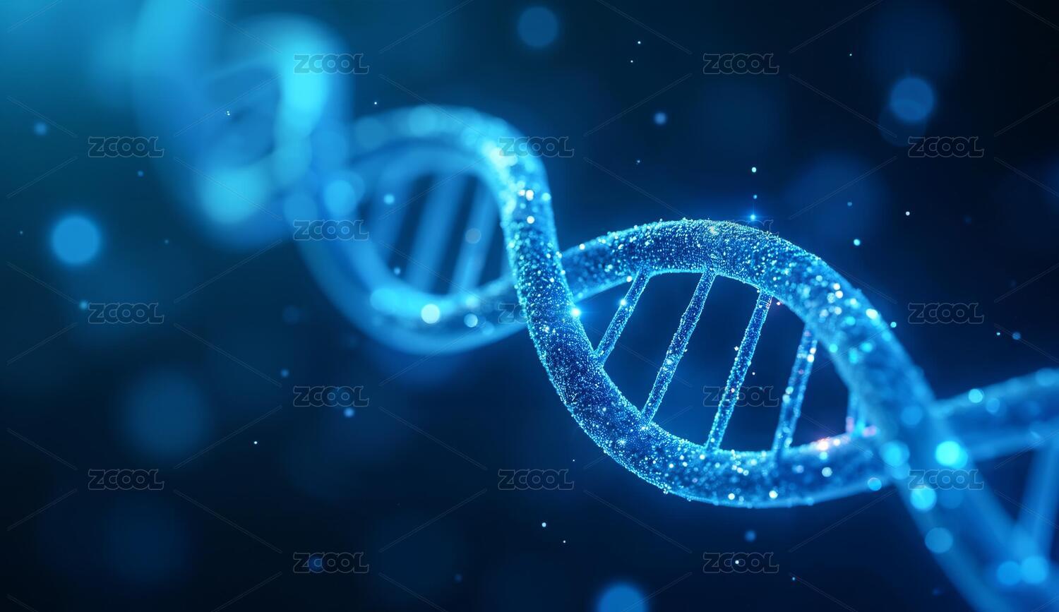 蓝色背景微观世界里的DNA 染色体螺旋结