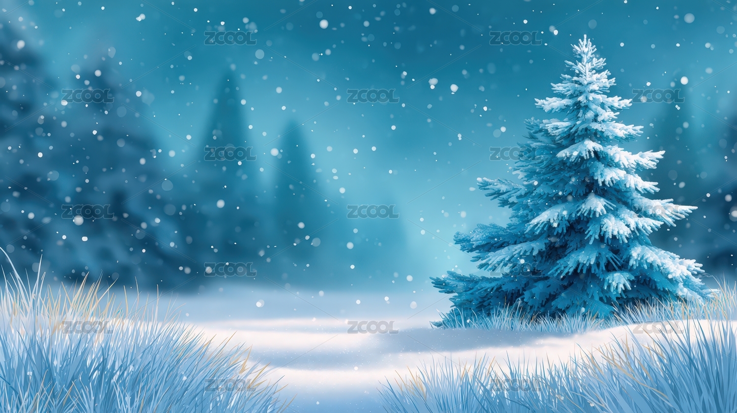 森林,装饰,圣诞节,灯光,节日,圣诞树,雪花,雪地,冬日,礼物