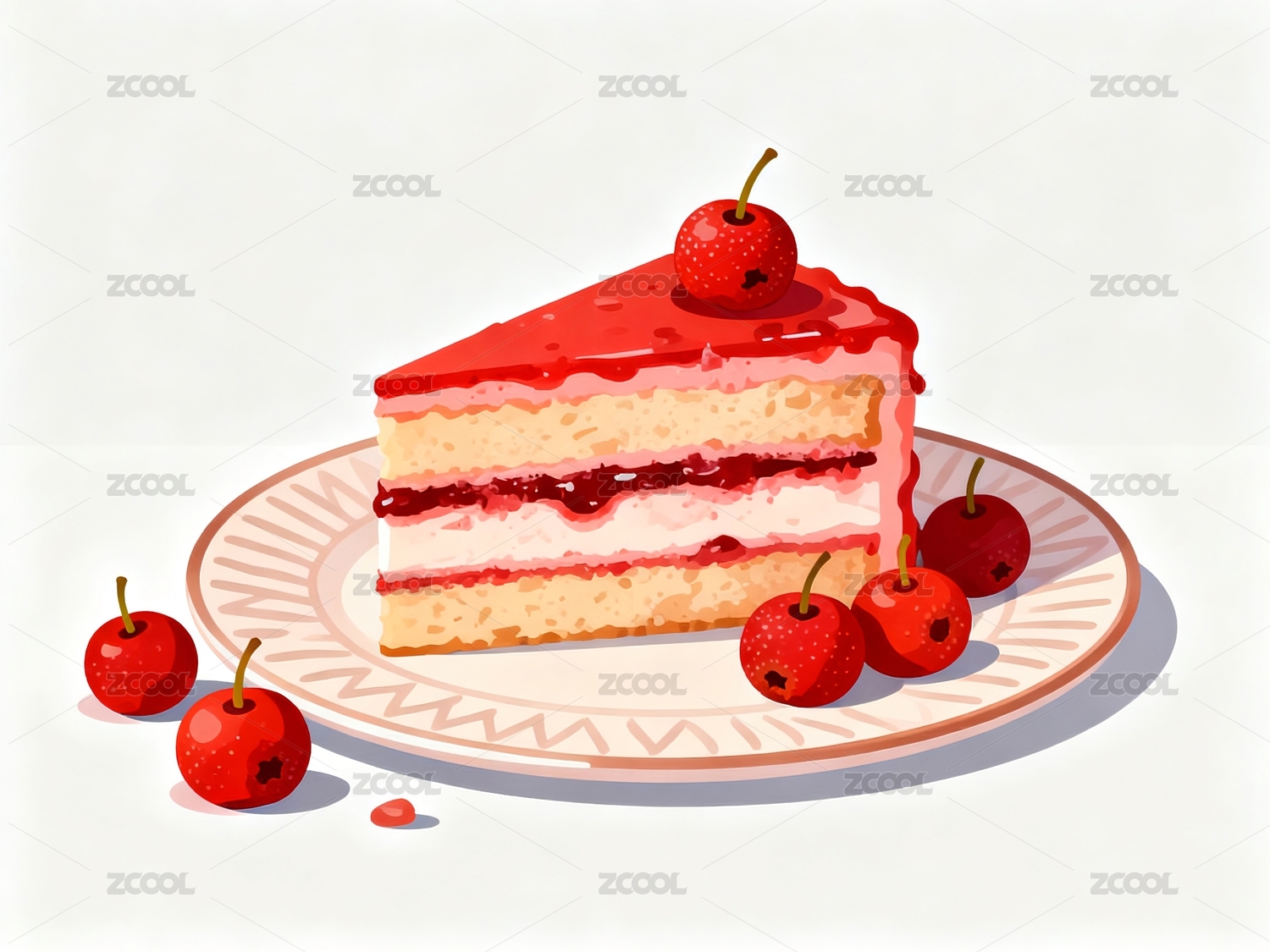 蛋糕,切块,草莓,水果,甜点,糕点,圆形,白色,红色,装饰