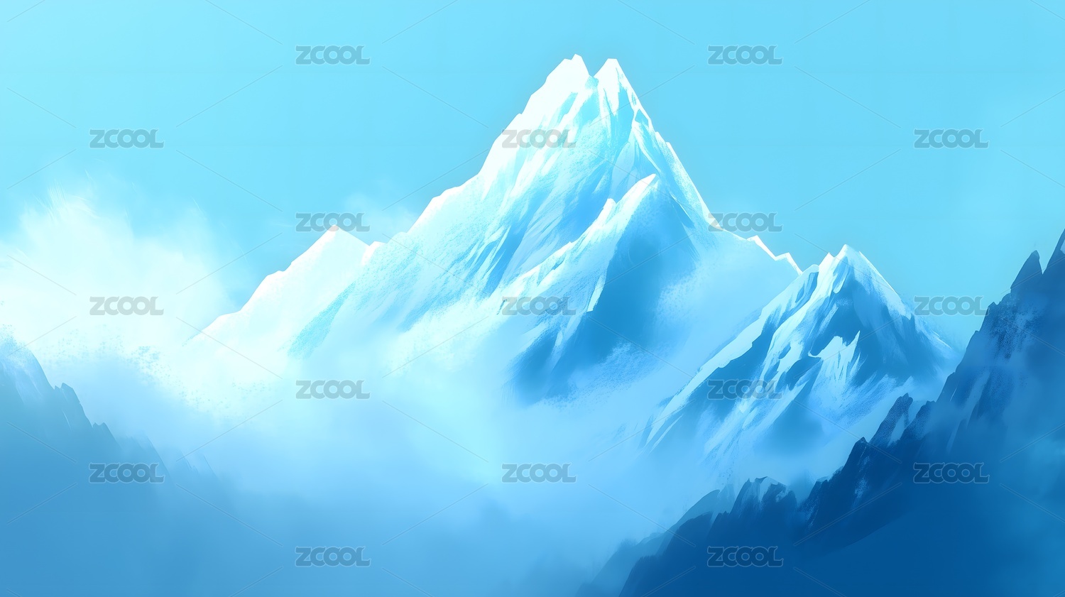 光影,蓝色,树木,白色,自然,清新,蓝天,雪山,风景,山脉