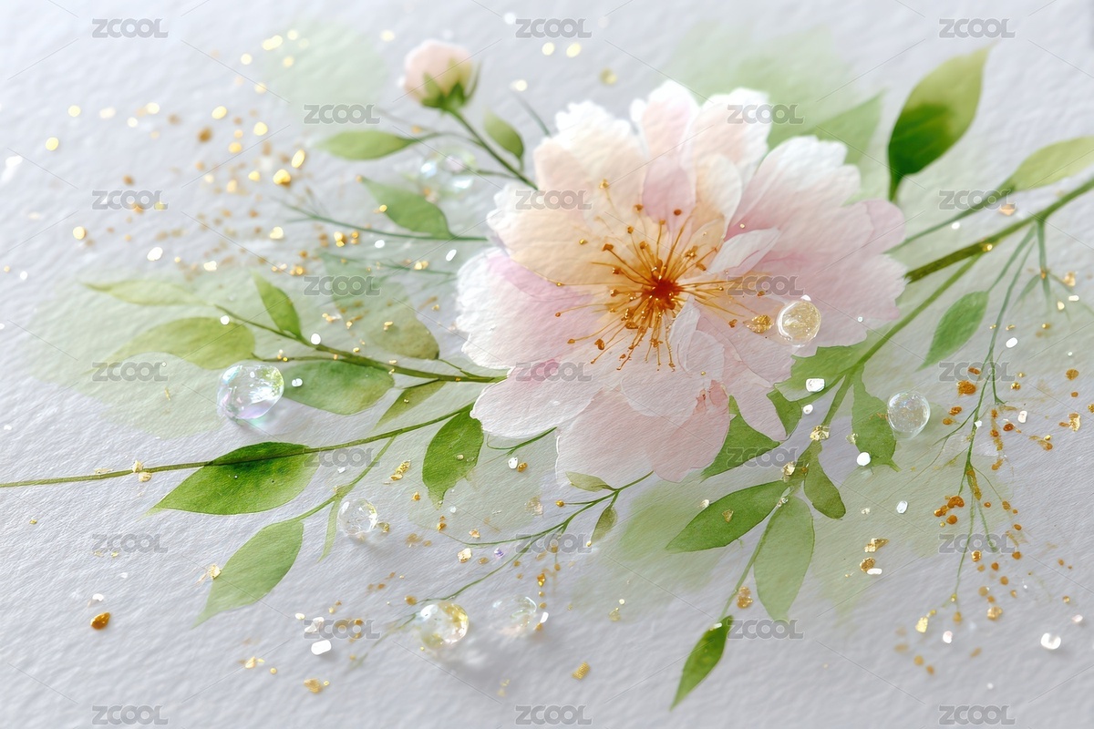 绿叶,自然,金粉,艺术,花朵,水珠,清新,柔和