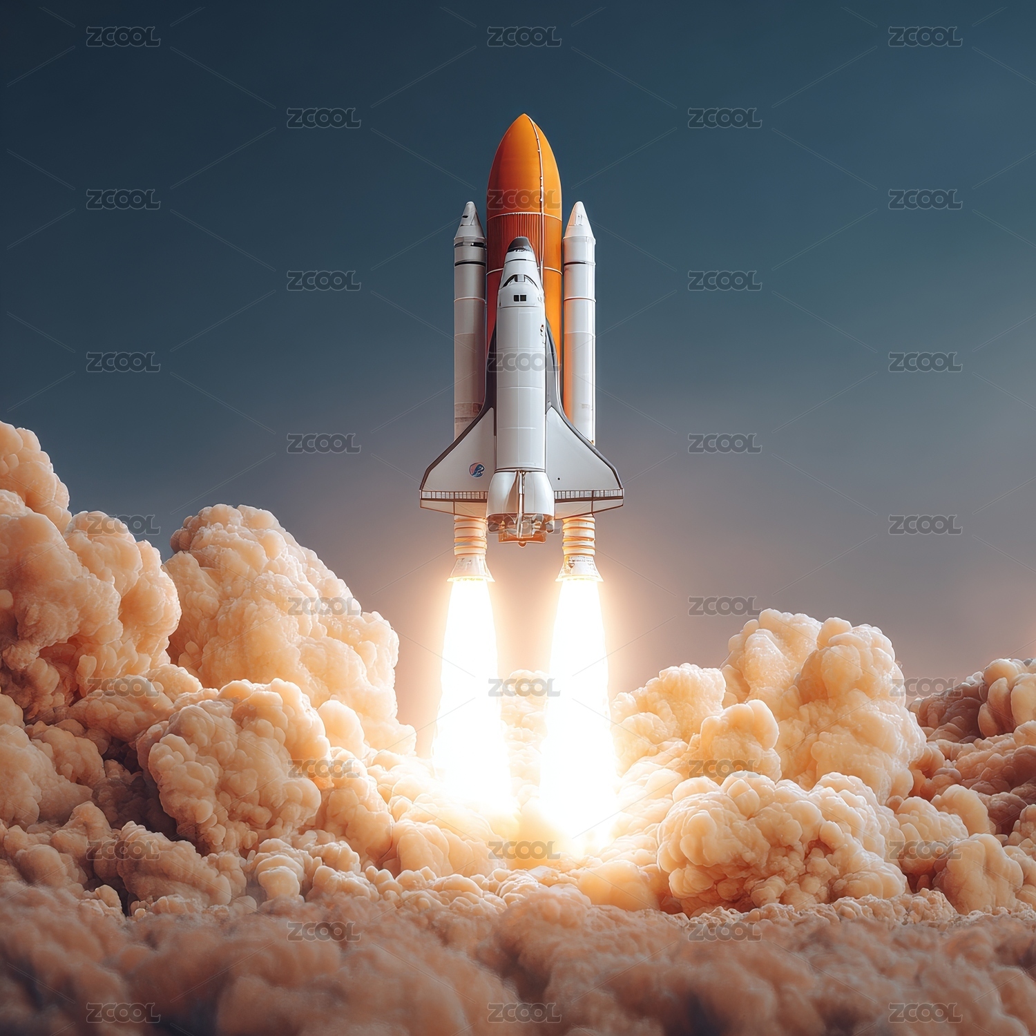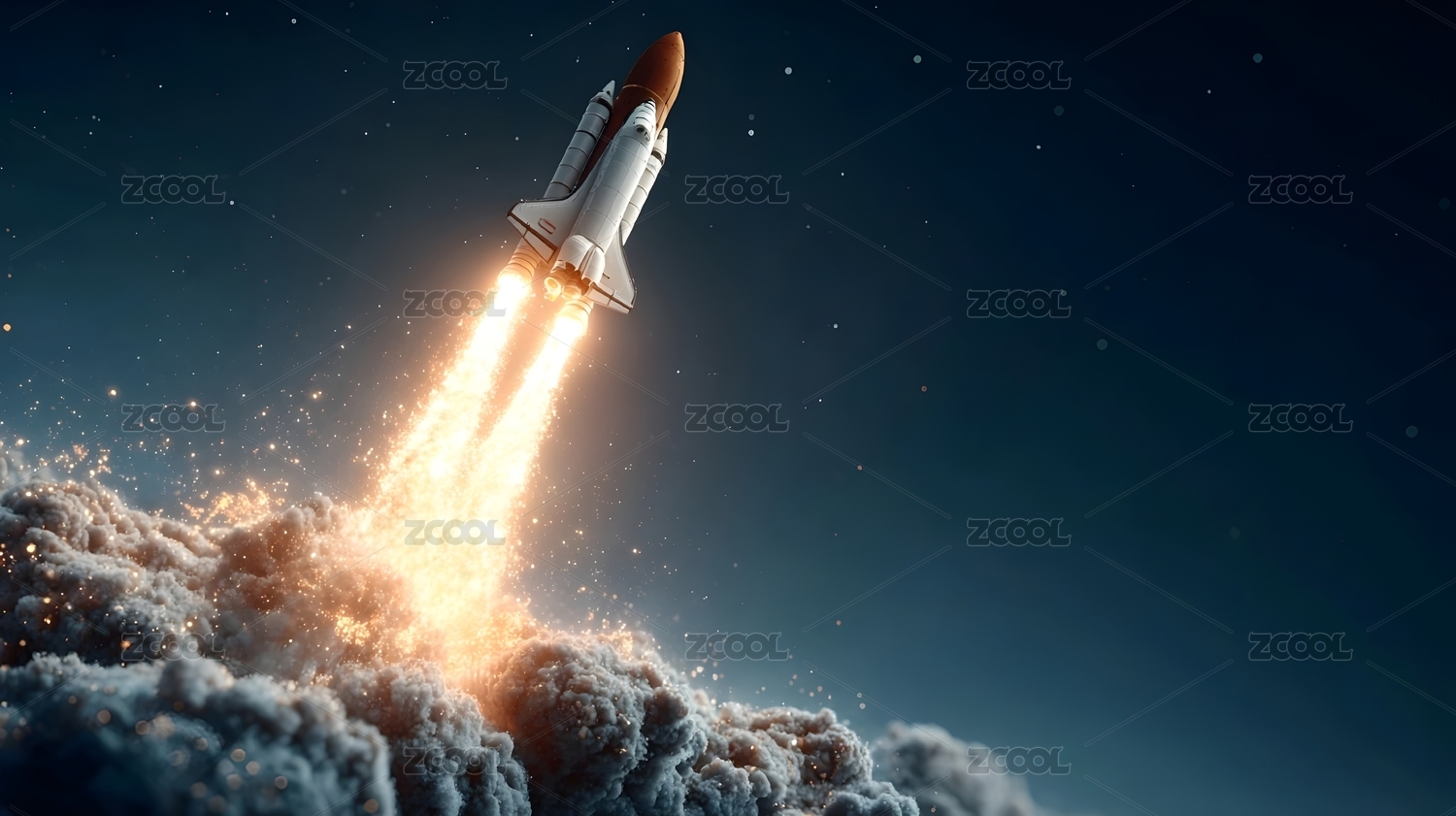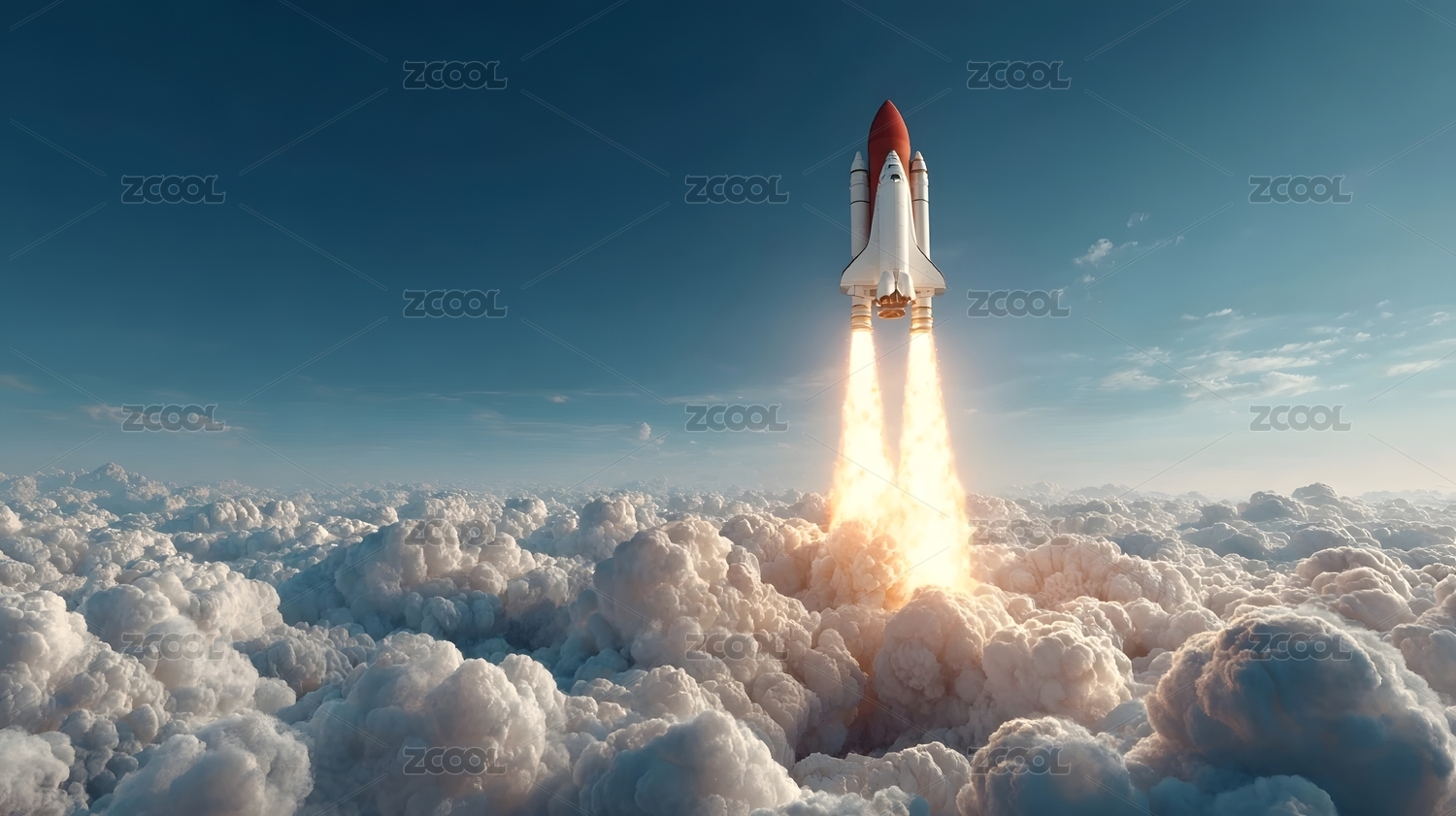 蓝色,天空,画面,航天飞机,升空,火焰,云朵,发射,飞行,机械