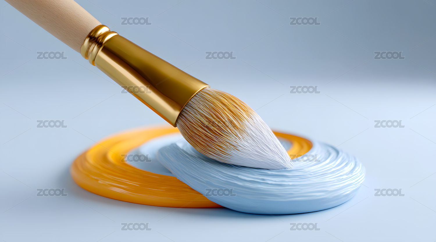 一只3D卡通画笔和颜料