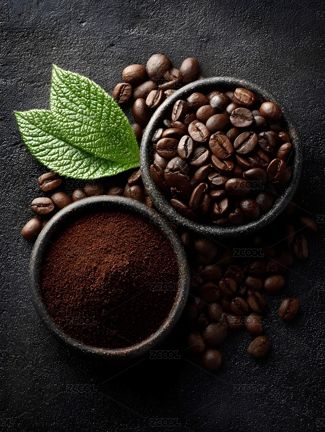 咖啡豆与咖啡粉的特写