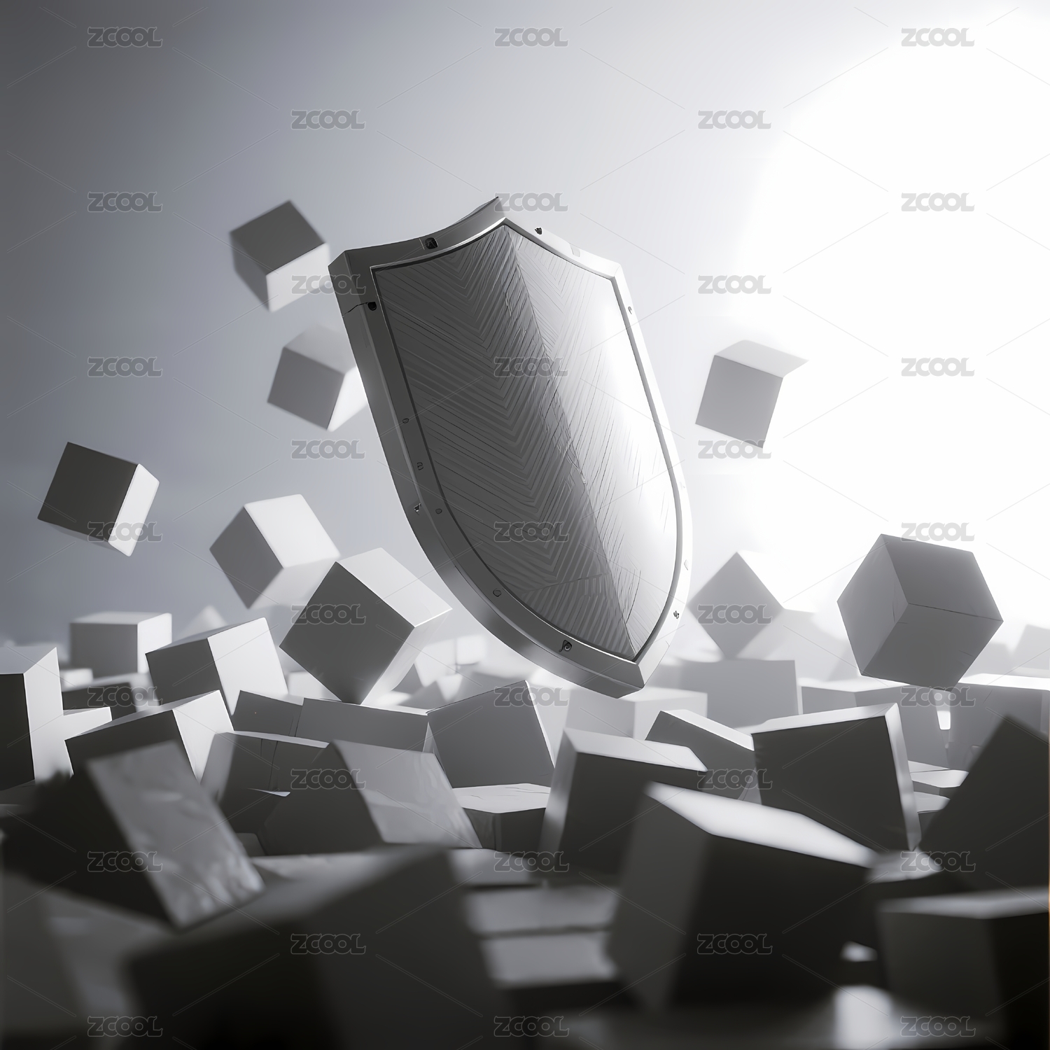 盾牌与立方体的悬浮场景