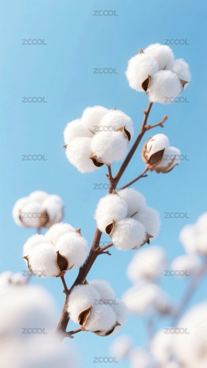主视觉,商业,壁纸,棉花,植株,清新,田园,场景,棉田,蓝天