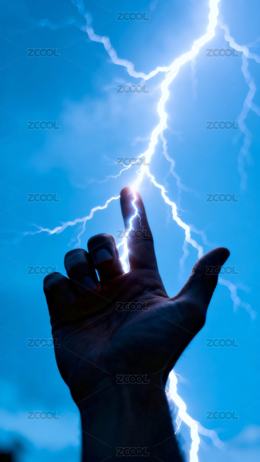 手掌闪电震撼自然现象场景