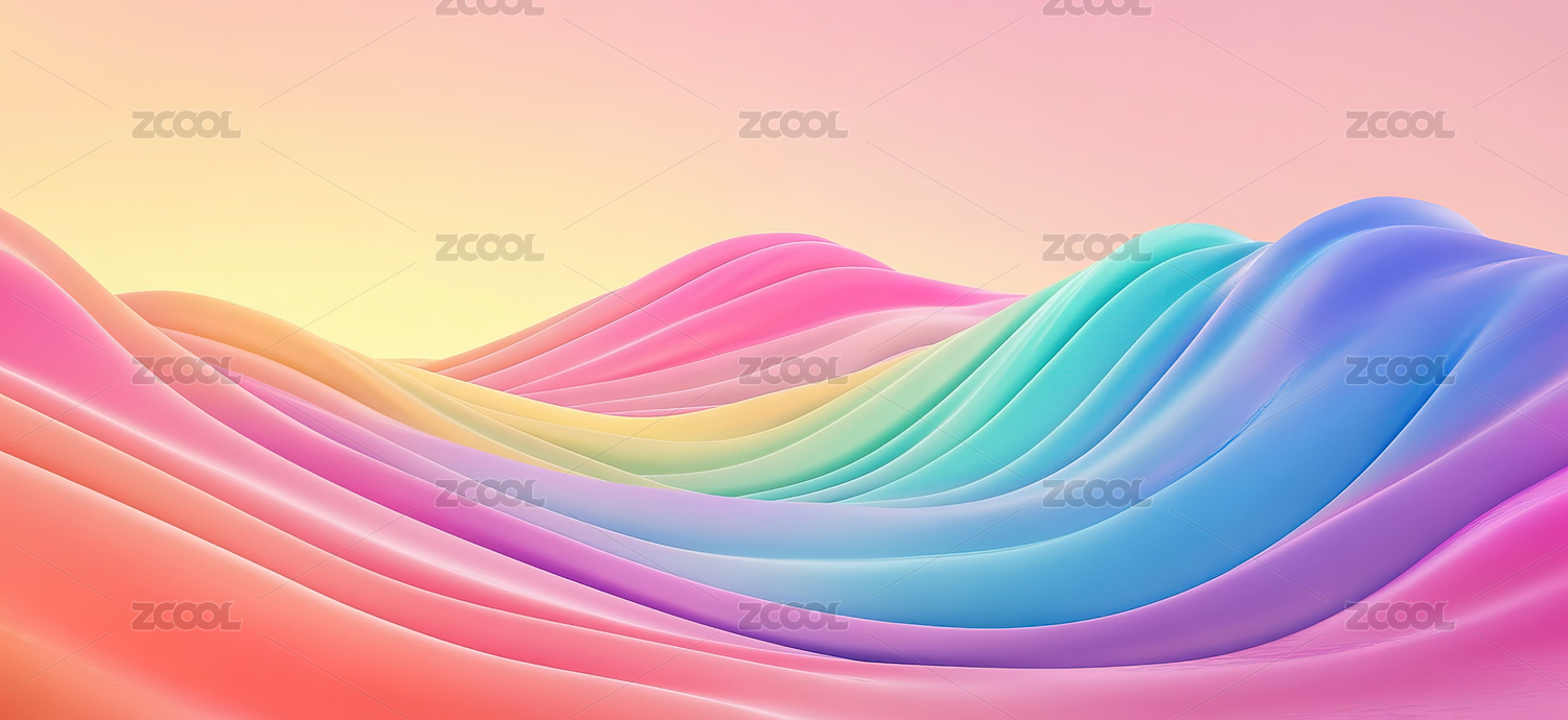 柔美丝绸波浪色彩抽象画