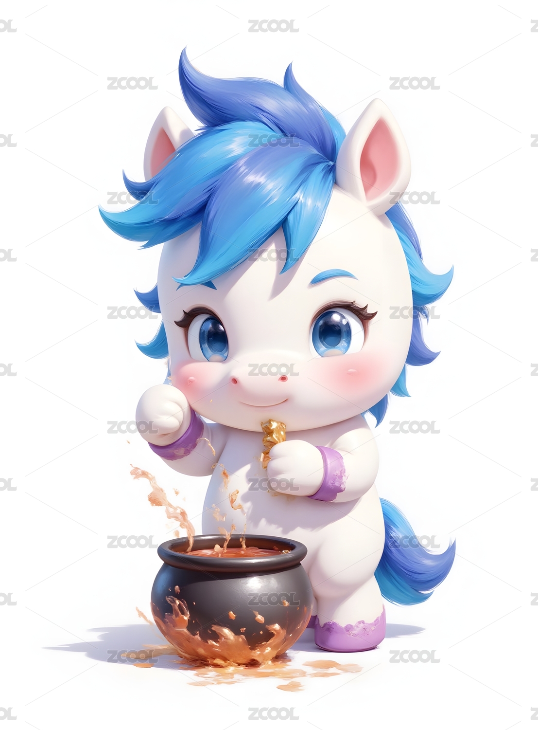 卡通,可爱,蓝色,设计,白色,小马,头发,形象,娱乐,动物