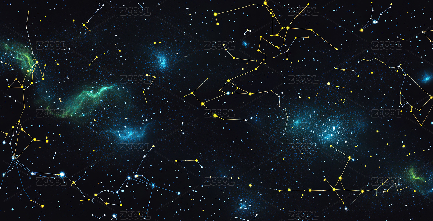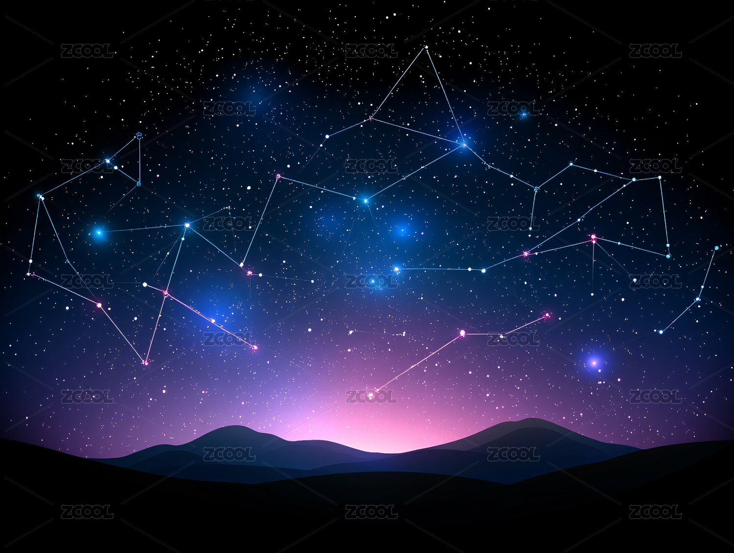 夜空星座图案与山峦轮廓图