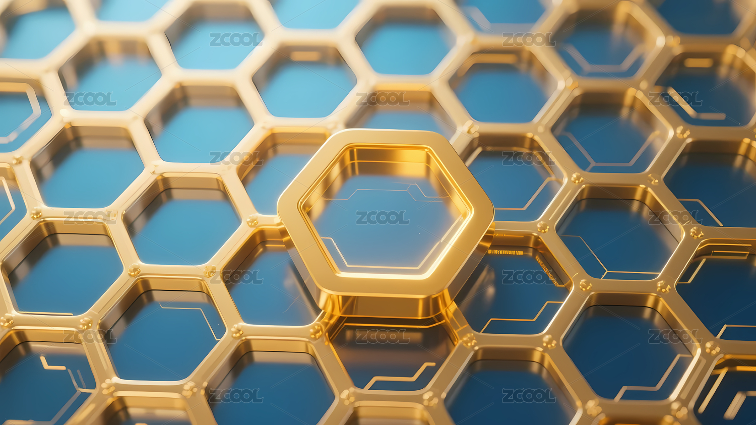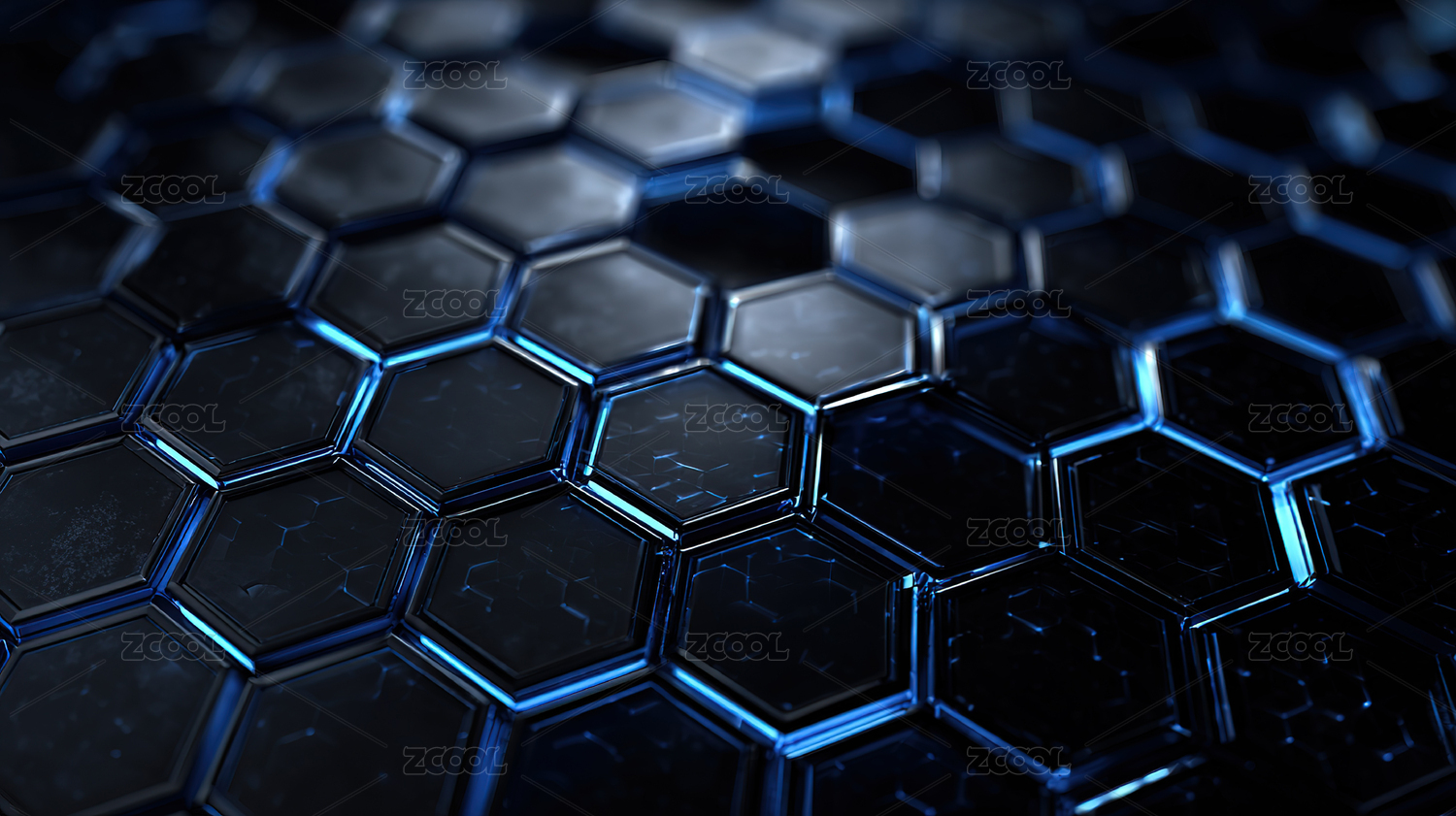 数码蓝色立体蜂窝结构六角图形海报网页背景