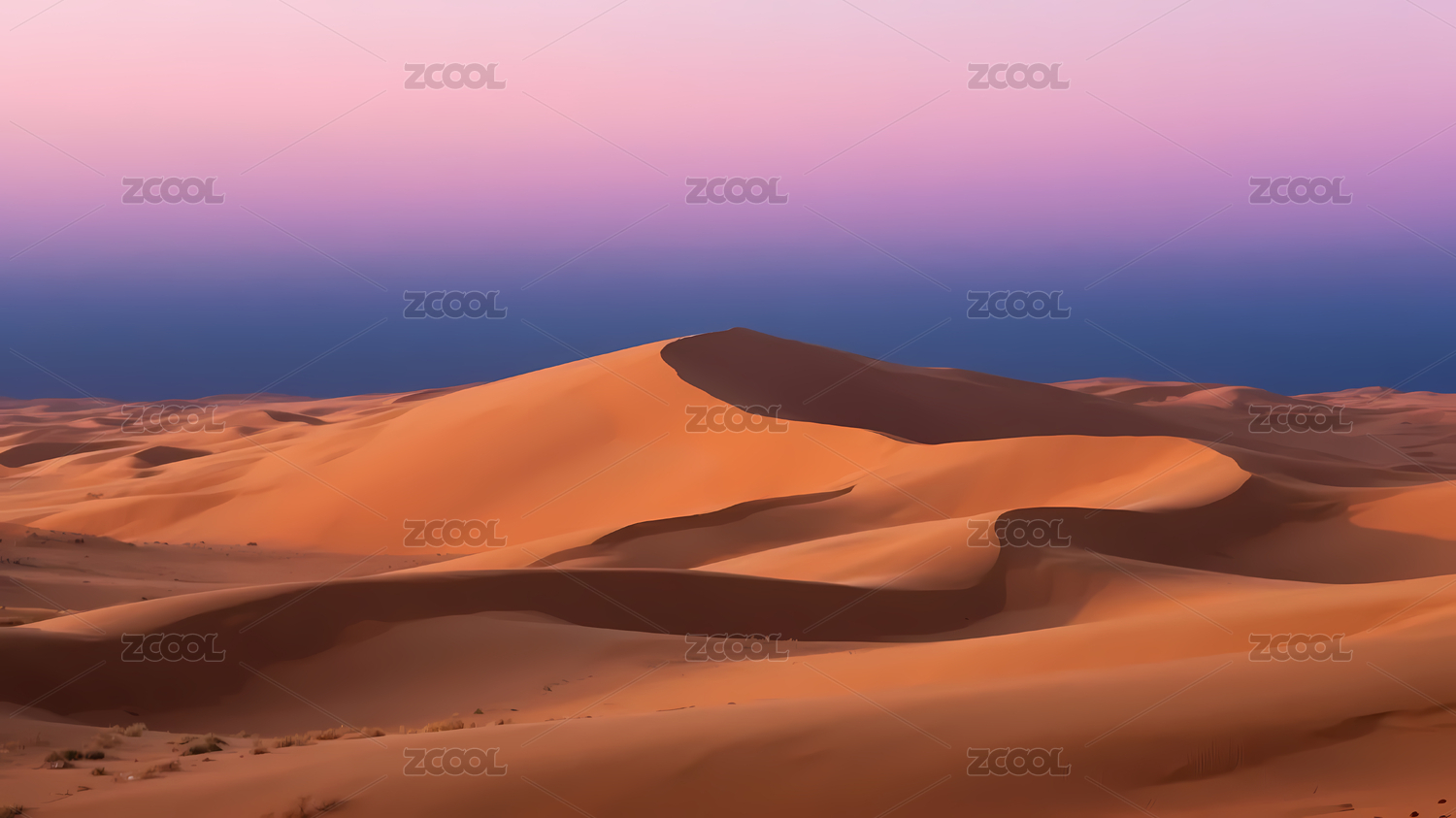 粉紫沙丘渐变天空日落
