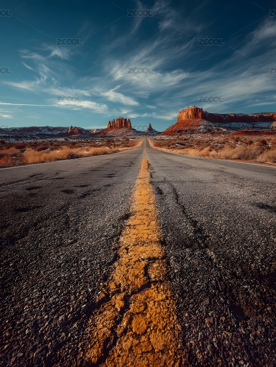 荒漠公路延伸向远方