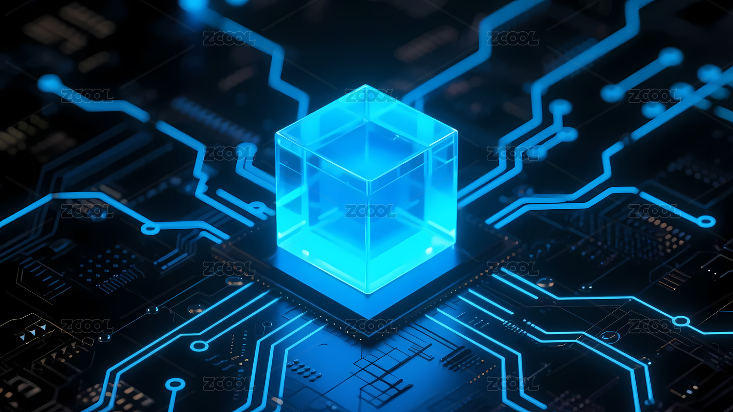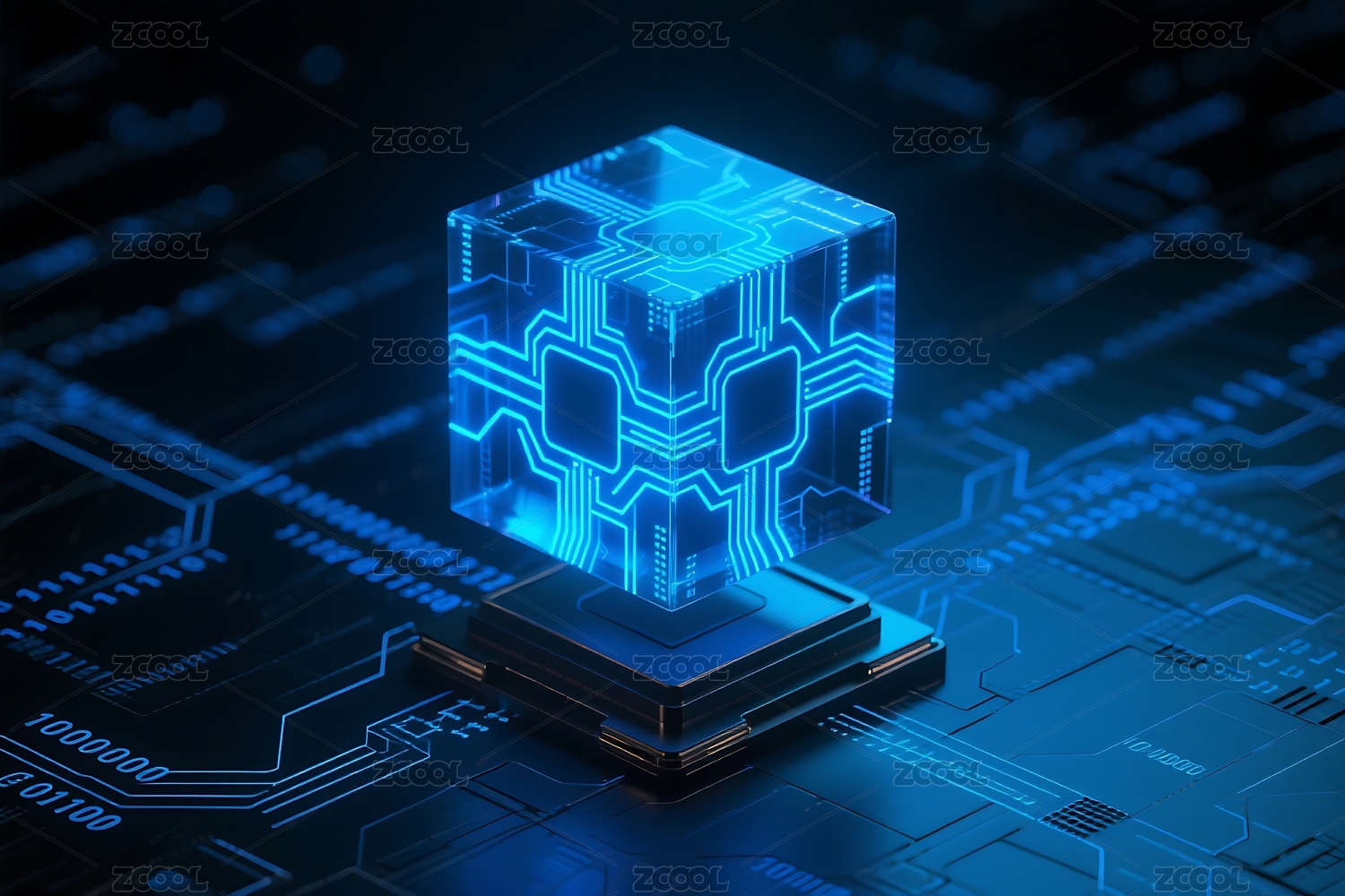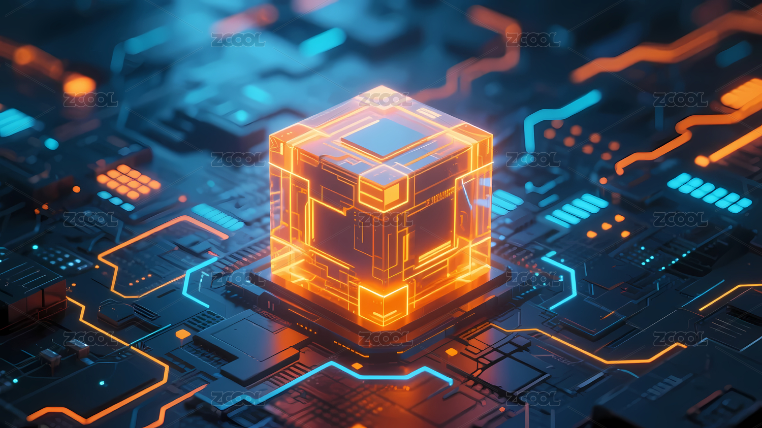 深蓝,蓝色,温暖,金色,发光,电路板,芯片,透明,未来感,高科技