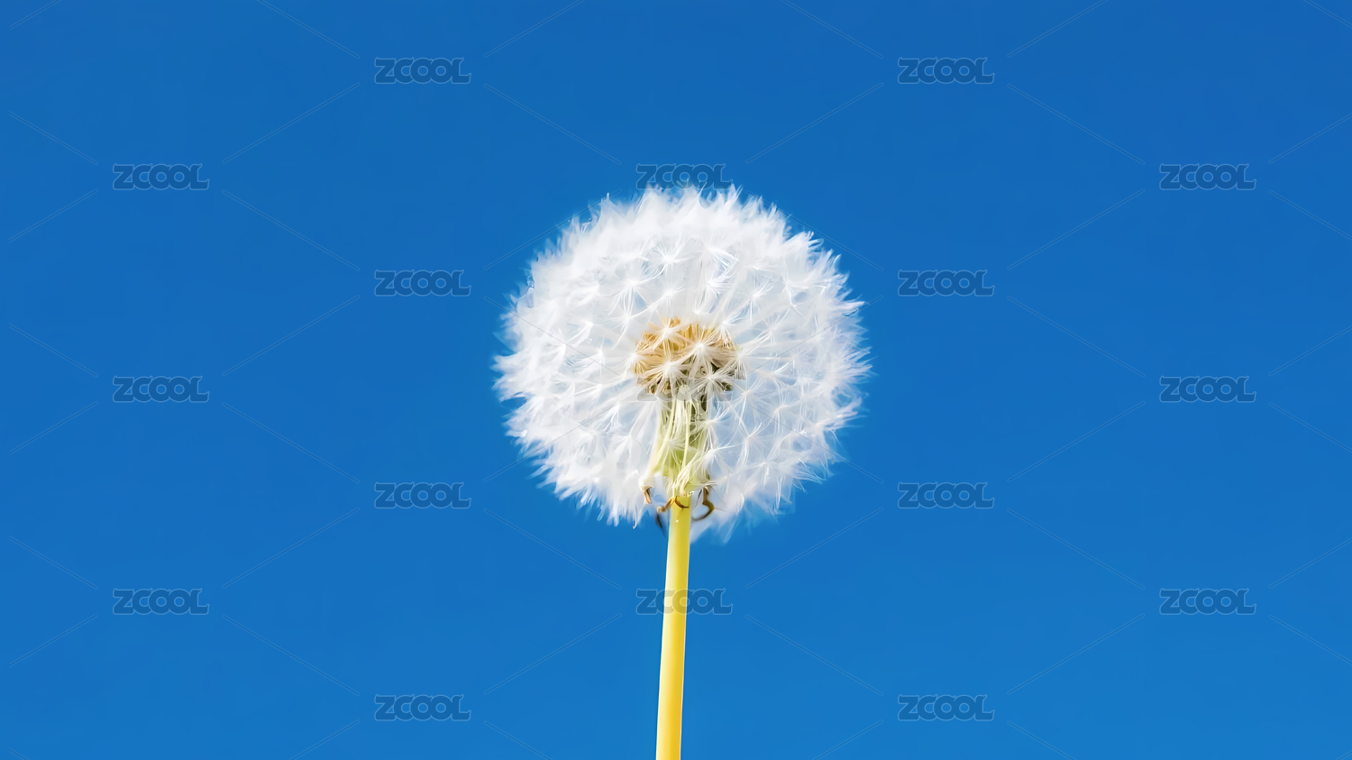黄色,蓝色,白色,宁静,清新,自然,天空,蒲公英,绒球,茎