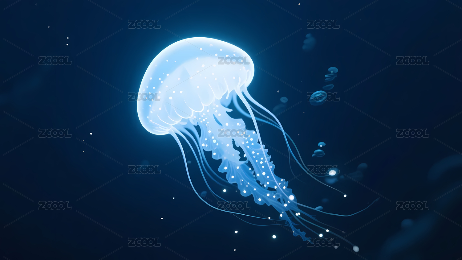透明水母蓝色背景
