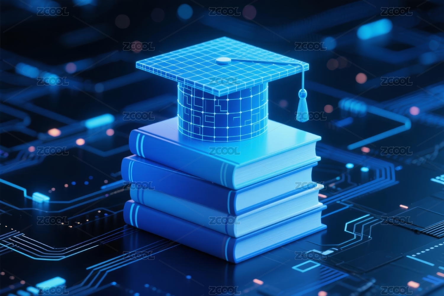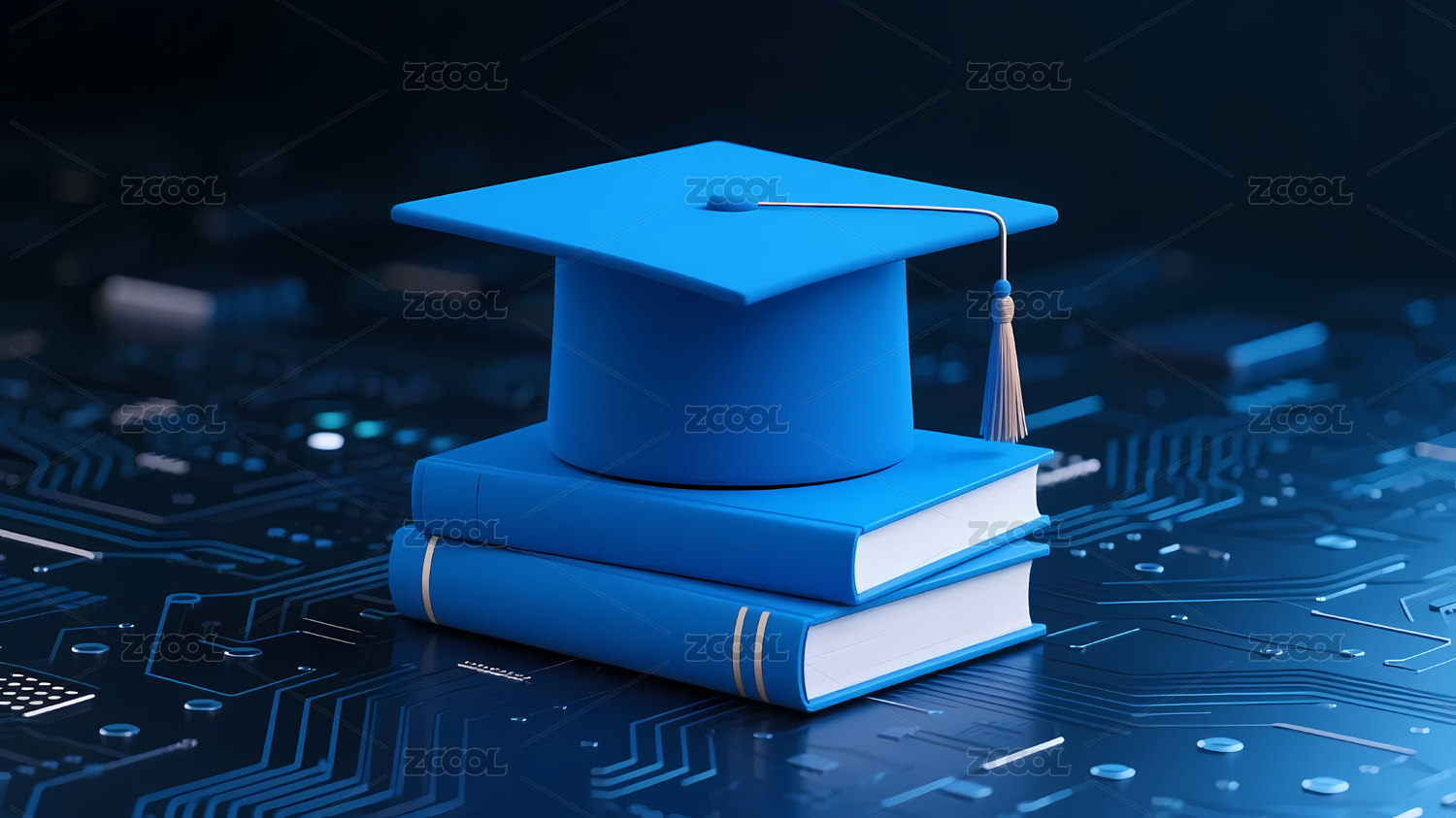 蓝色毕业帽三本书电路