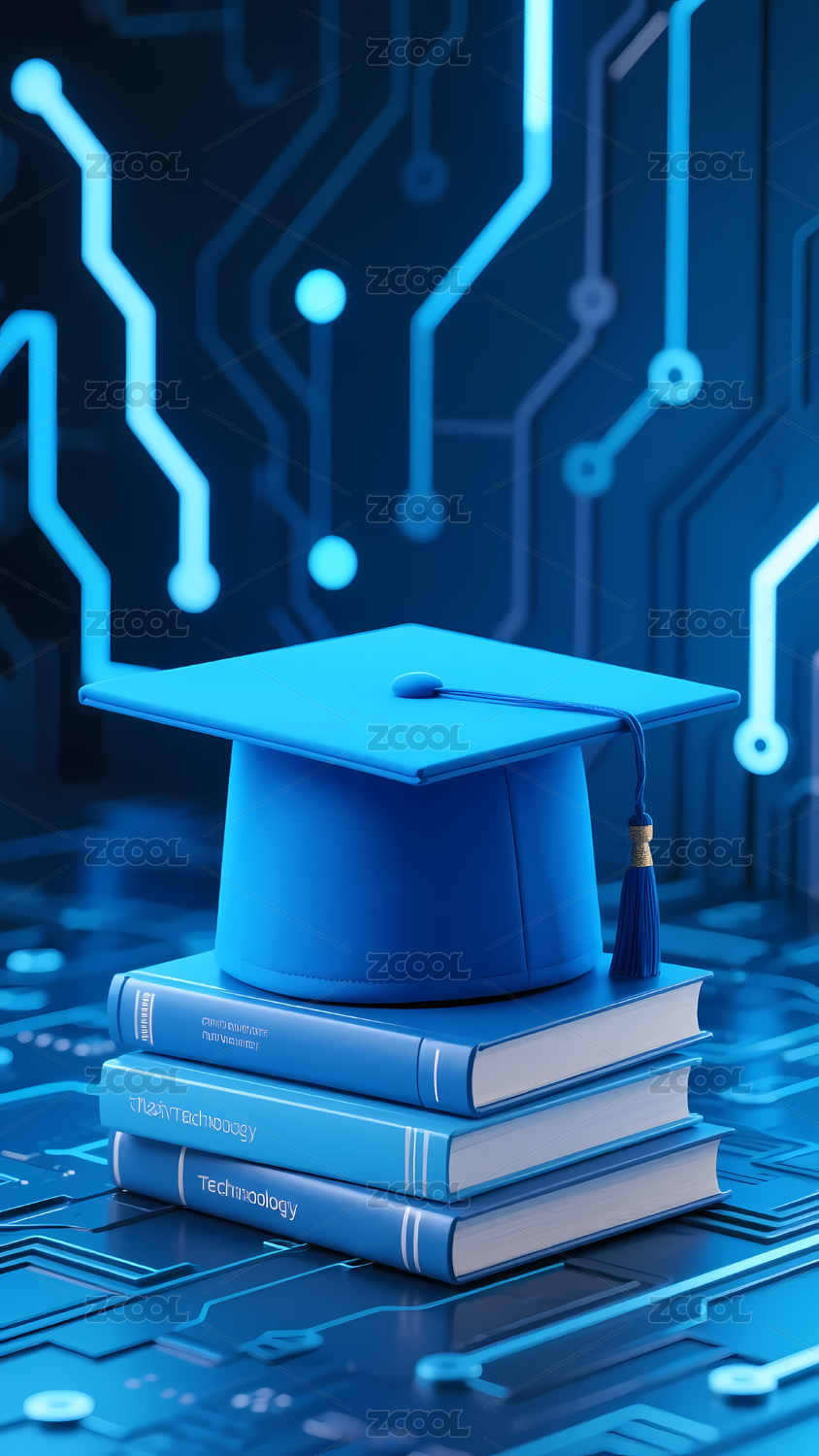 学士帽与书本的科技风
