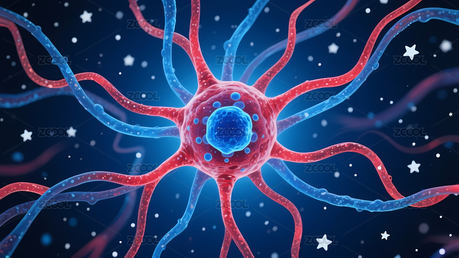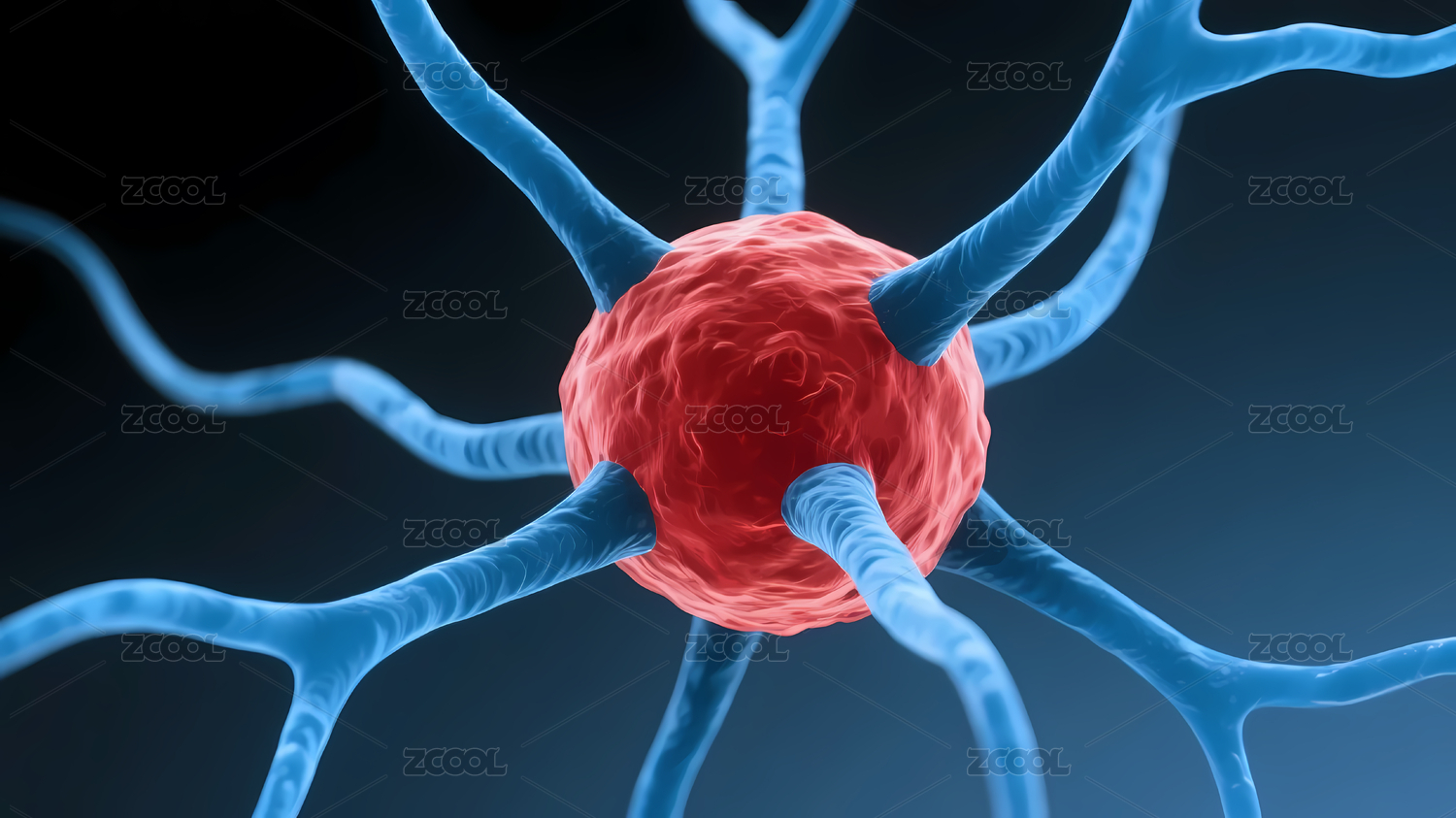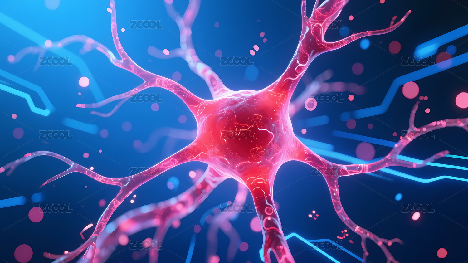 红色神经元细胞点缀蓝色背景