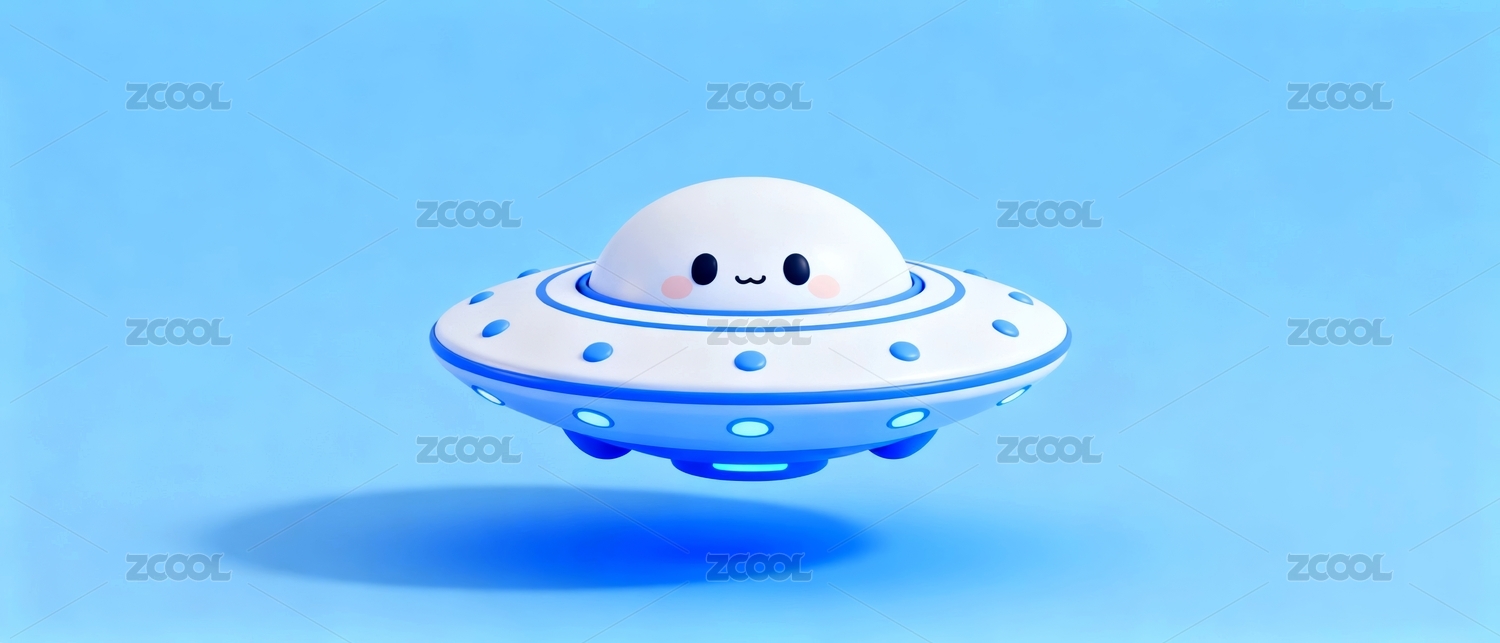 蓝色飞碟模型漂浮在白色背景中