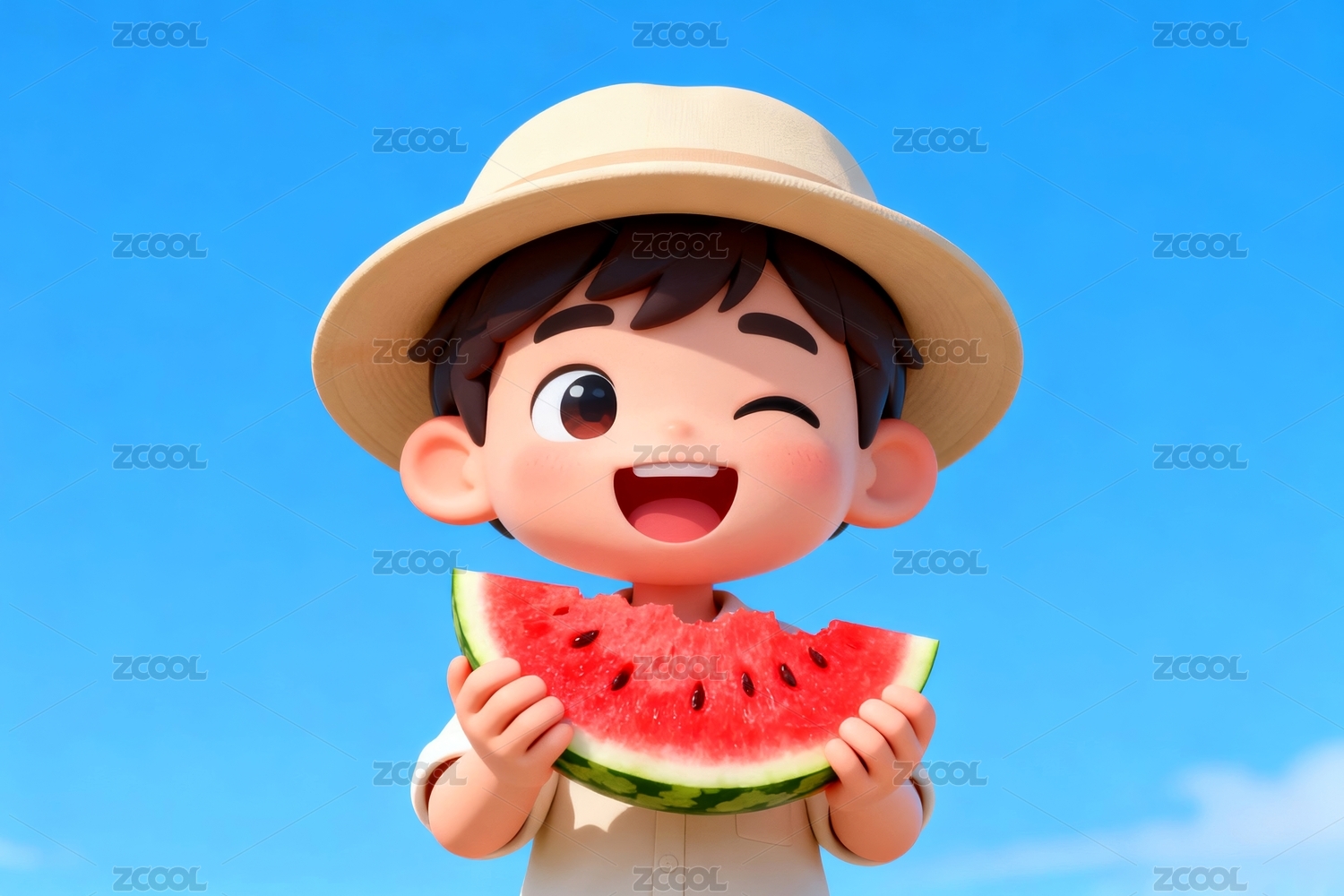 主视觉,商业,壁纸,场景,男孩,开心,夏日,卡通,插画,童趣