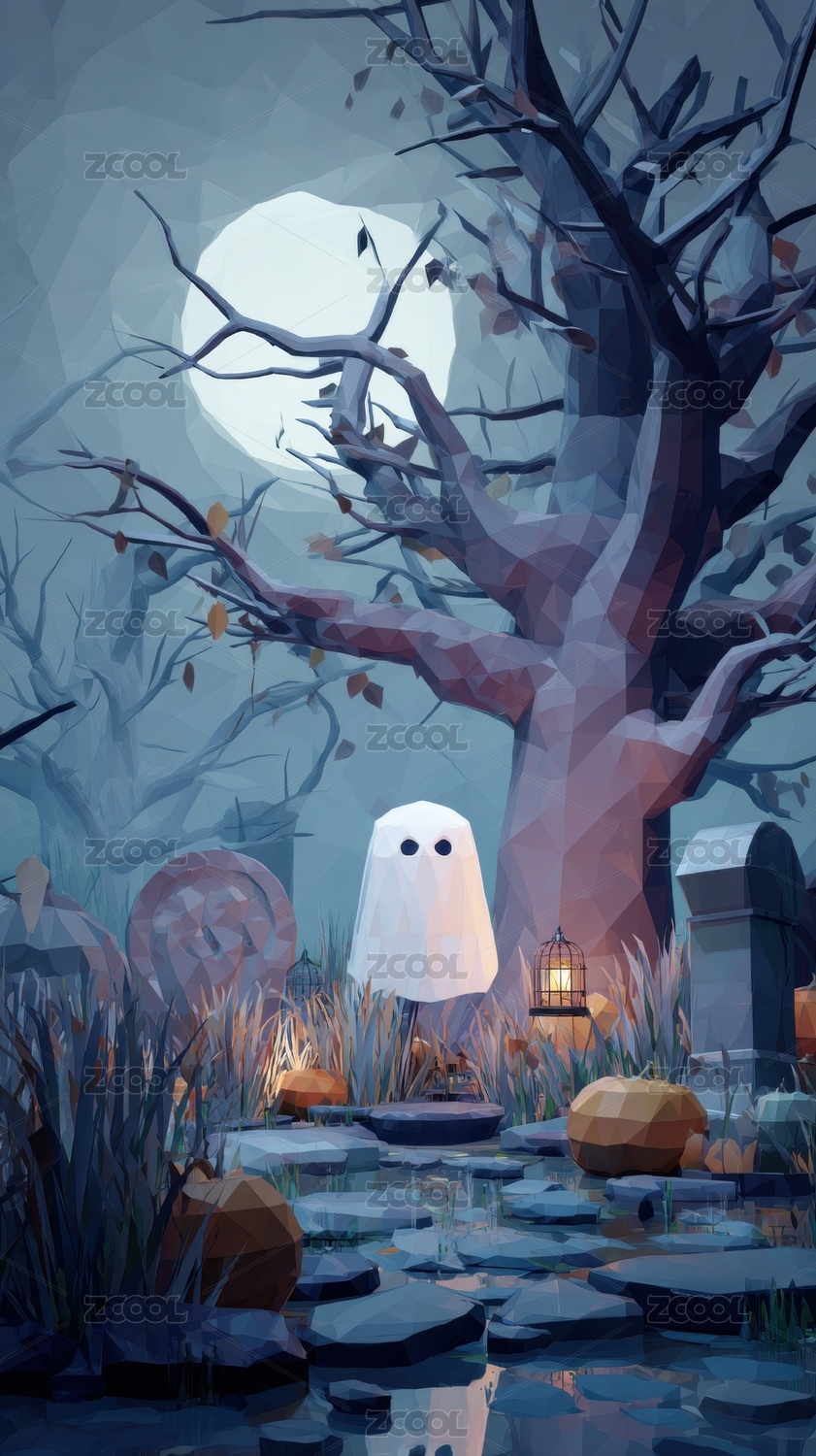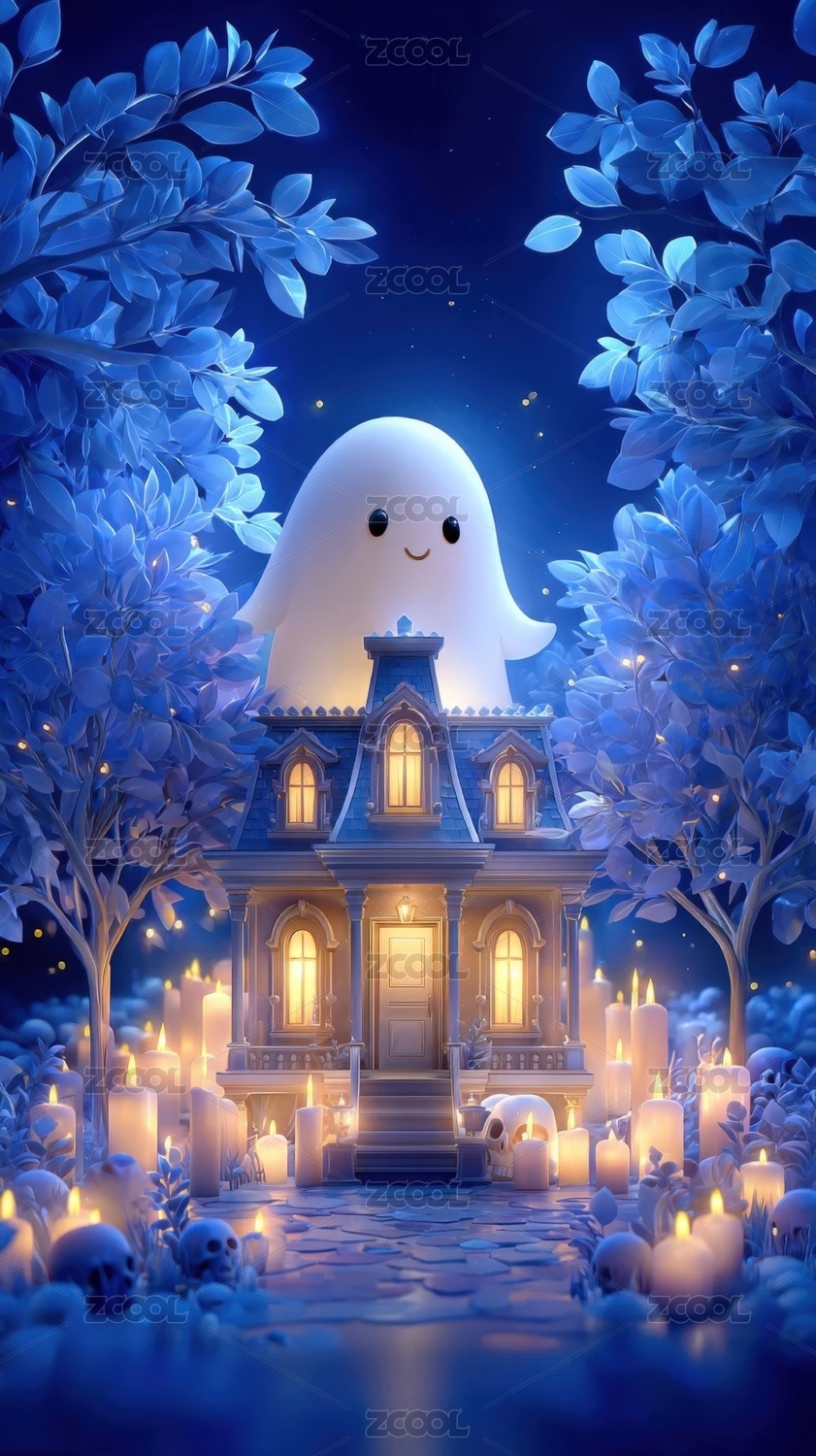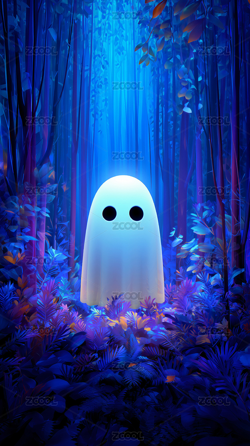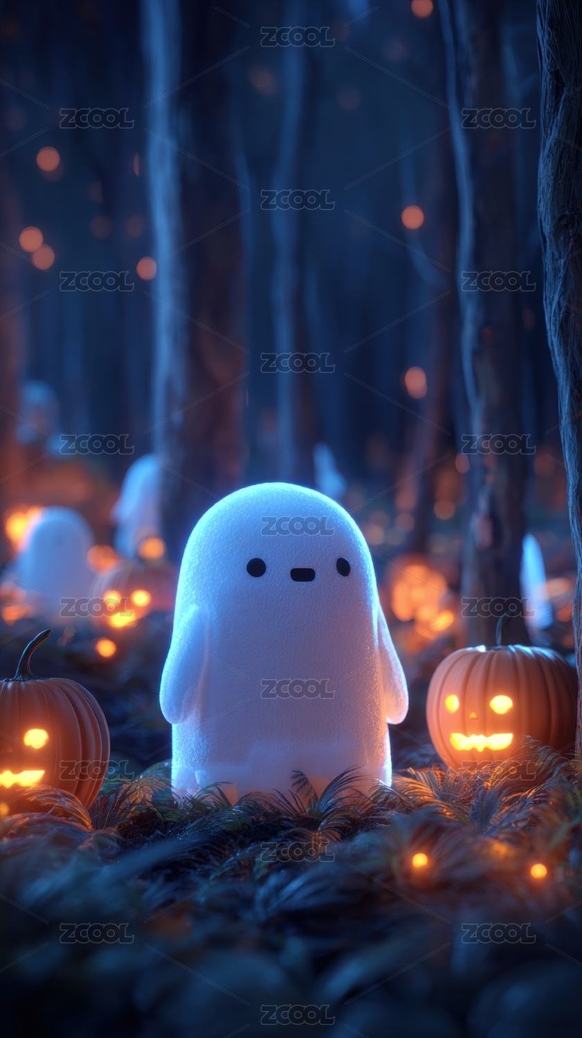 万圣节,脸,黑色,插画,卡通,森林,树,3D,节日,鬼魂