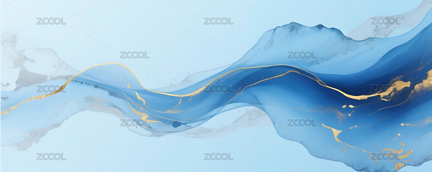蓝金色高端时尚水墨晕染大理石纹理背景