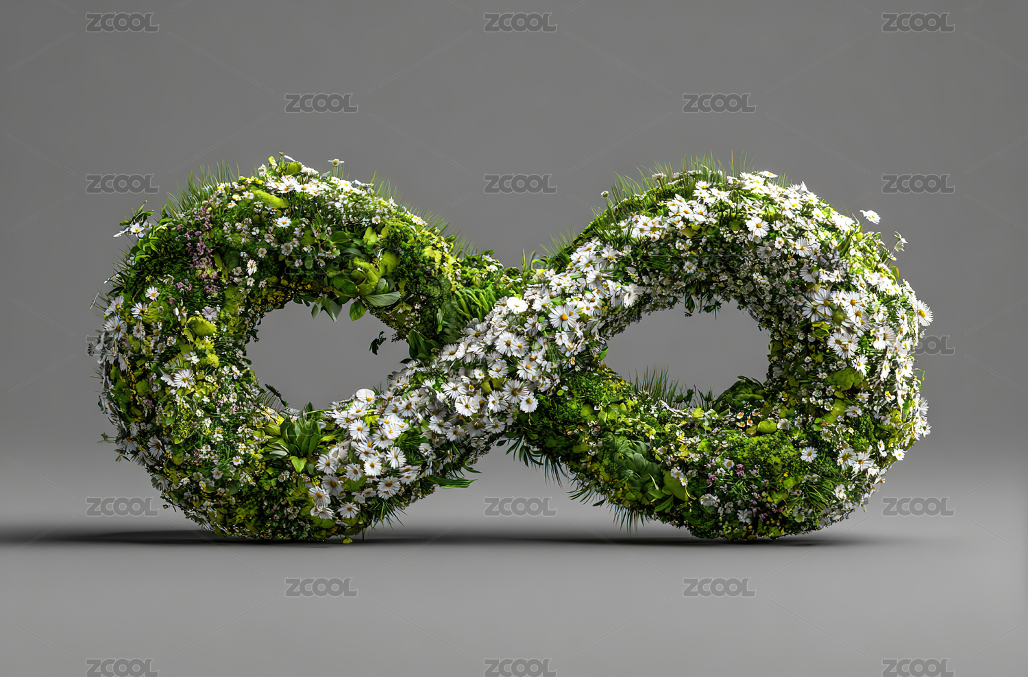 无限符号由绿植与雏菊构成的生态艺术造型