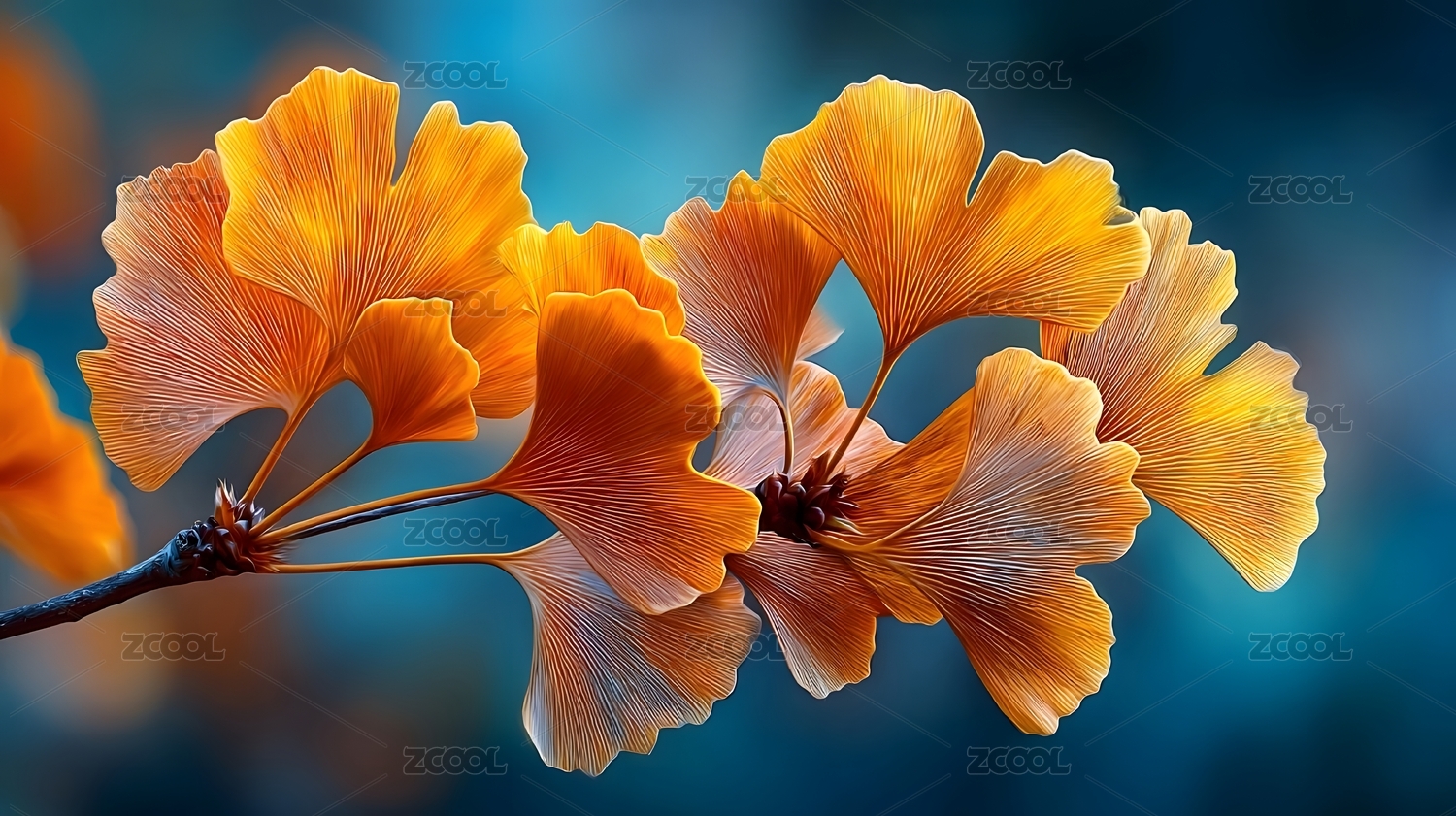 银杏叶秋日色彩特写