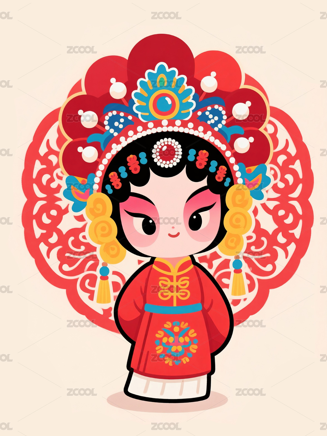 京剧,卡通,传统,服饰,女性,头饰,中国风,戏曲,红色,花纹