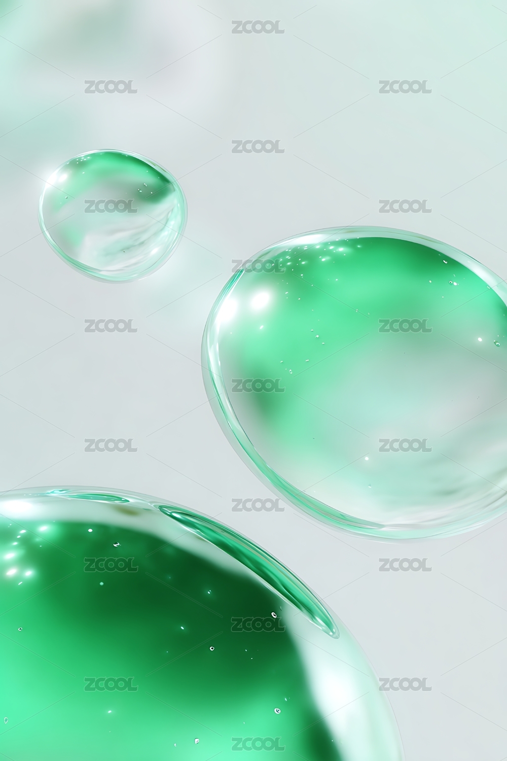 绿色透明气泡背景三维渲染