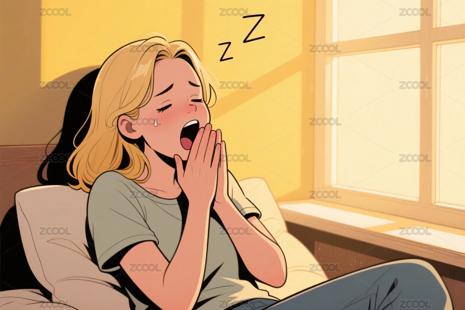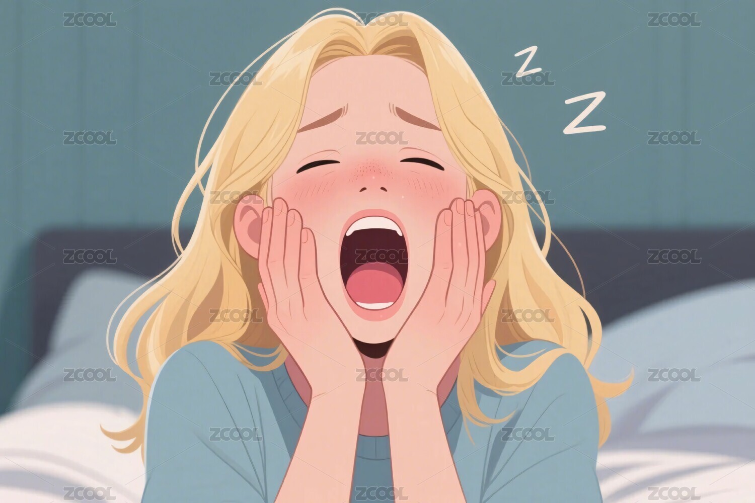 打哈欠的卡通女孩